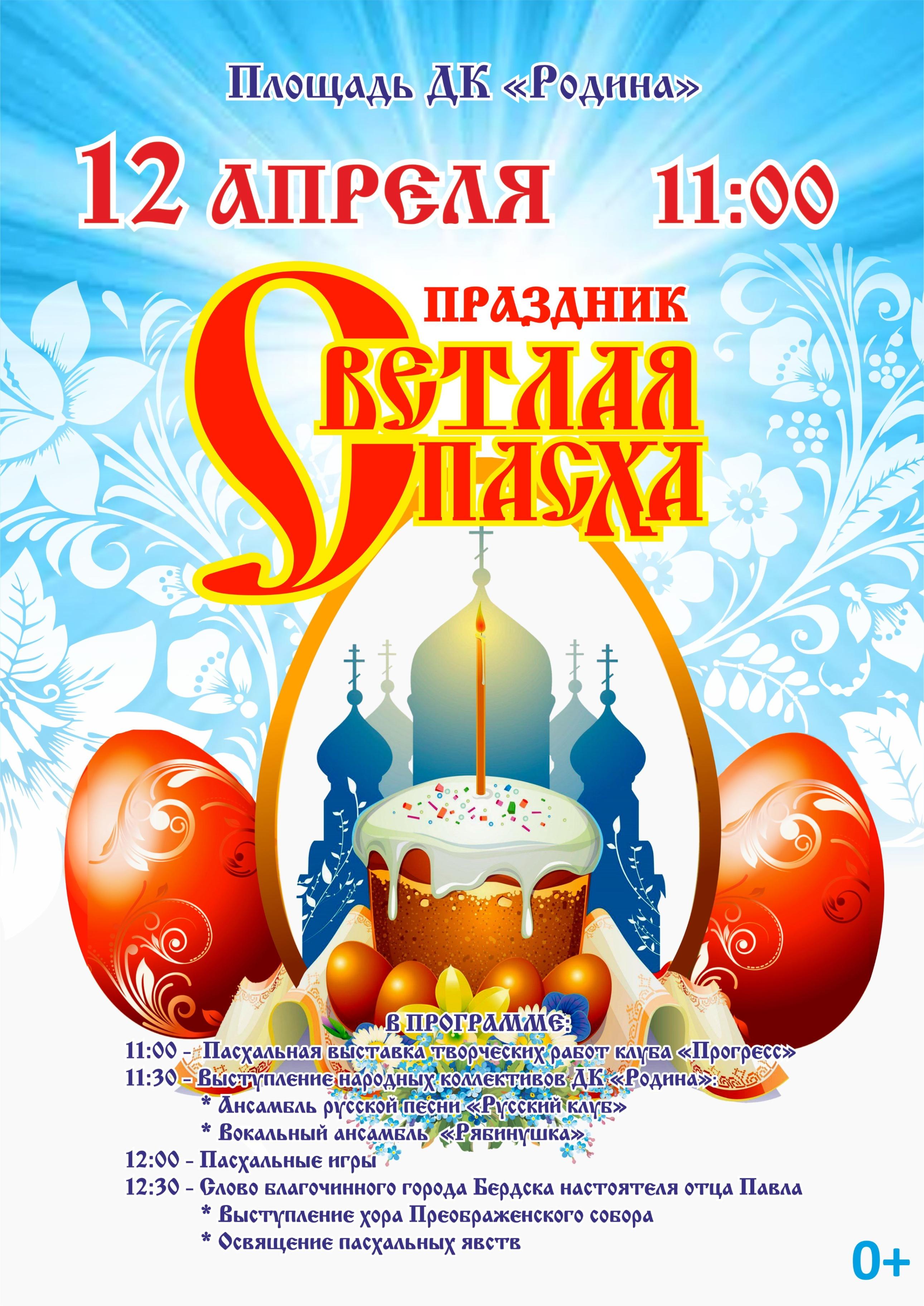 В Светлое Христово Воскресение, в самый радостный и благодатный день года, на площади перед Дворцом культуры «Родина» – праздничная программа, полная традиций, творчества и веселья!