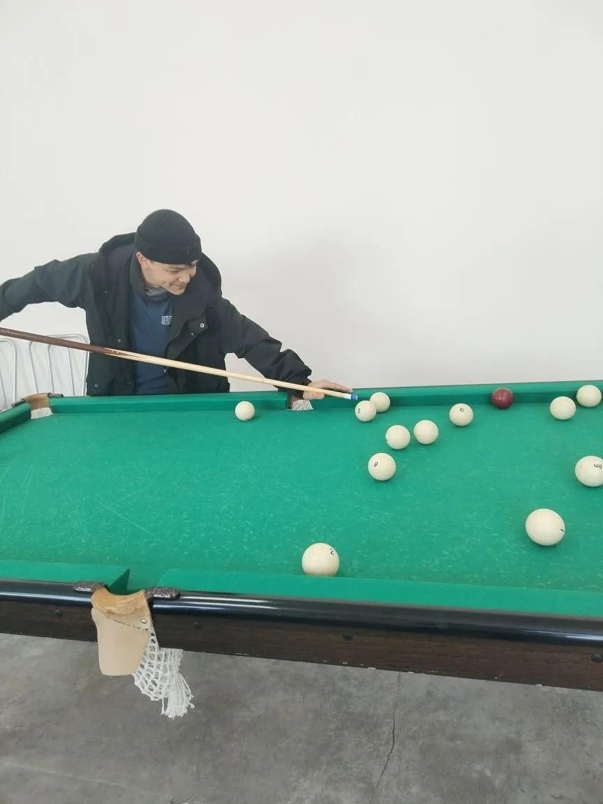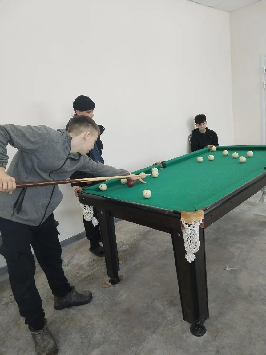 В клубе установили бильярдный стол. Он стал очень популярен у молодежи. Но играть умеют единицы – взрослые мужчины.