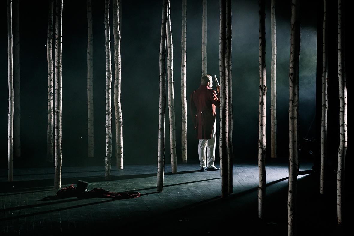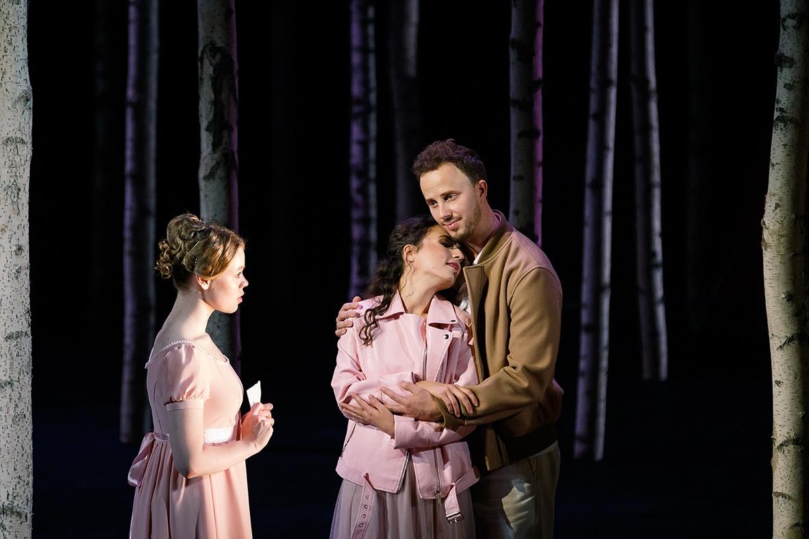 Спектакль Дмитрия Волкострелова – 12-я постановка на сцене театра. Его авторы точно следуют либретто оперы, однако вводят в нее новый временной слой, отсылающий зрителя к современности. Все пушкинские герои встречают своих двойников и взаимодействуют с ними: идея сближения разных времен будет поддержана в костюмах персонажей – исторических и современных. Основным элементом сценографии станет береза как символ всего русского.