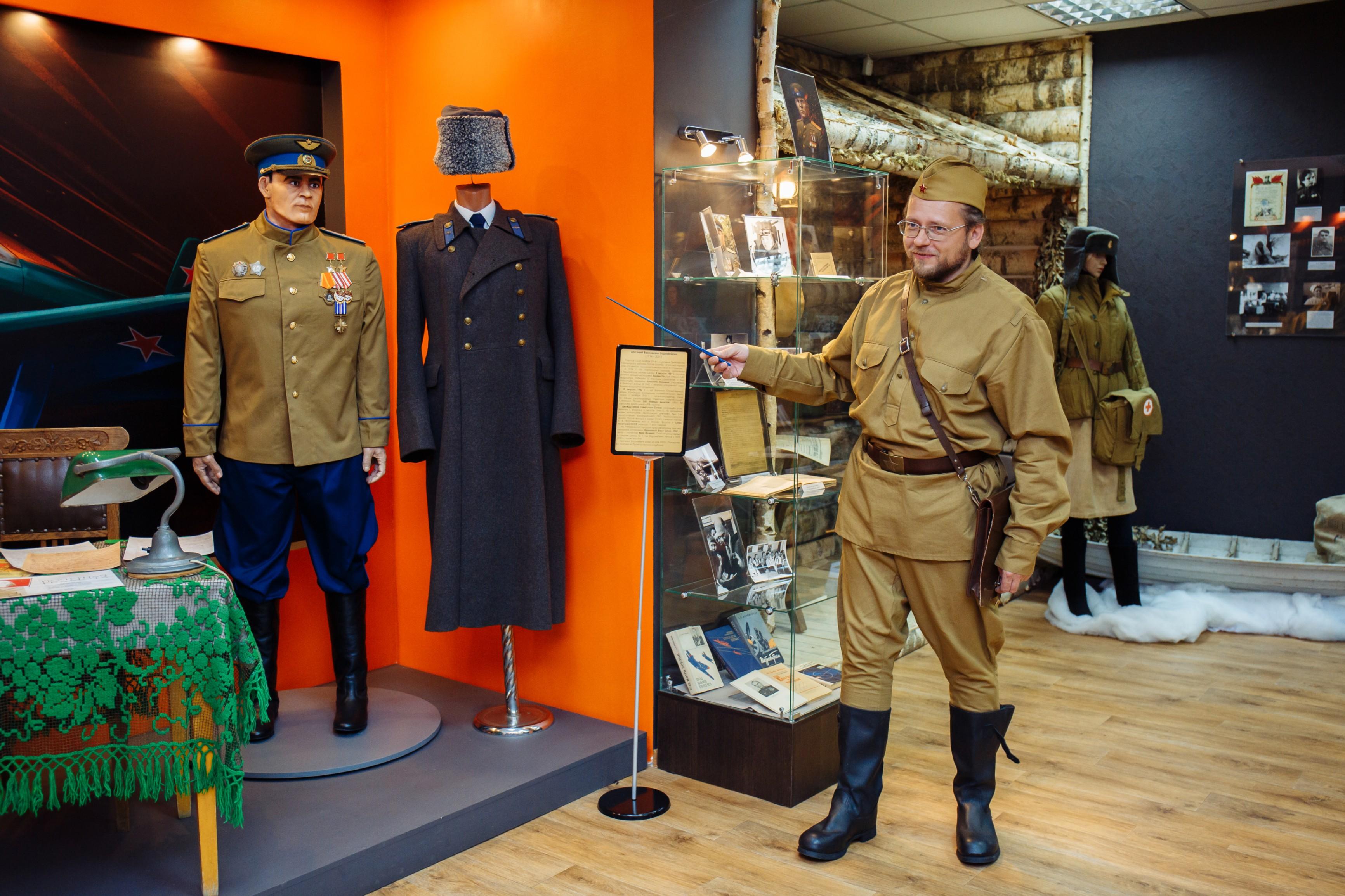 В экспозиции представлены подлинные свидетельства истории: личные вещи и документы фронтовиков, трофеи и диорамы, инсталляции времен войны, рассказывающие о жизни того нелегкого времени. Мемориальный комплекс включает в себя четыре экспозиционных зала: «О героях былых времен», «Воинская доблесть и слава», «Подвиг связиста», «Фронт трудовой». Художественное оформление выставочного пространства погружает в атмосферу военных лет, позволяет прочувствовать весь ужас того периода. Залы оборудованы инсталляциями с интерактивными зонами. Гостей, безусловно, привлечет стилизованный блиндаж, та самая землянка, где «бьется в тесной печурке огонь, на поленьях смола, как слеза...». Выставка «Солдаты неба» – это место, где каждый задумается... Задумается, вспомнит, осознает и поймет, что героизм и стойкость, сила, мужество и воля нашего народа, объединившегося против врага, всегда делают Россию непобедимой!