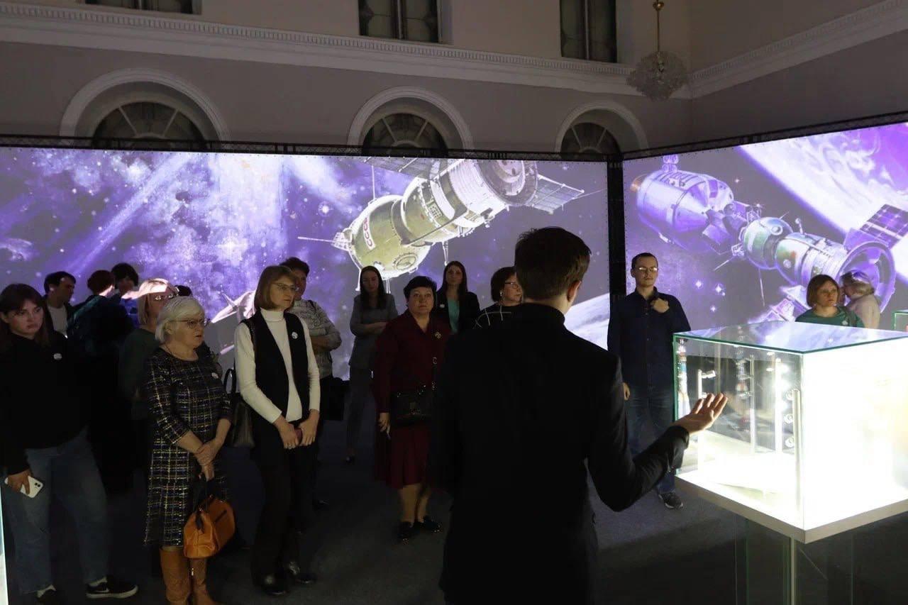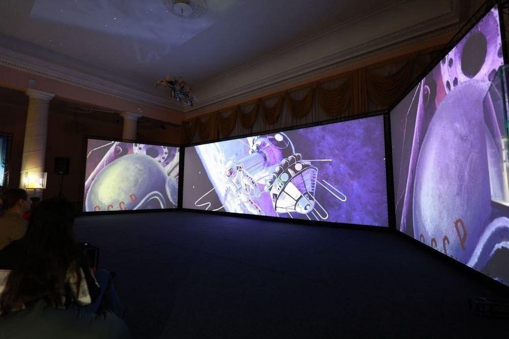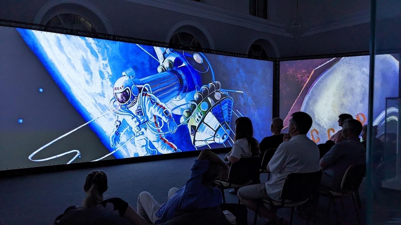 Видеоряд, включающий кадры из фильма «Время первых», инсталляции, музыкальные композиции и спецэффекты – все работает на то, чтобы у посетителей возникло ощущение, что они смотрят на земную жизнь из открытого космоса, чтобы они задумались о месте человека во Вселенной и о будущем развития космонавтики.