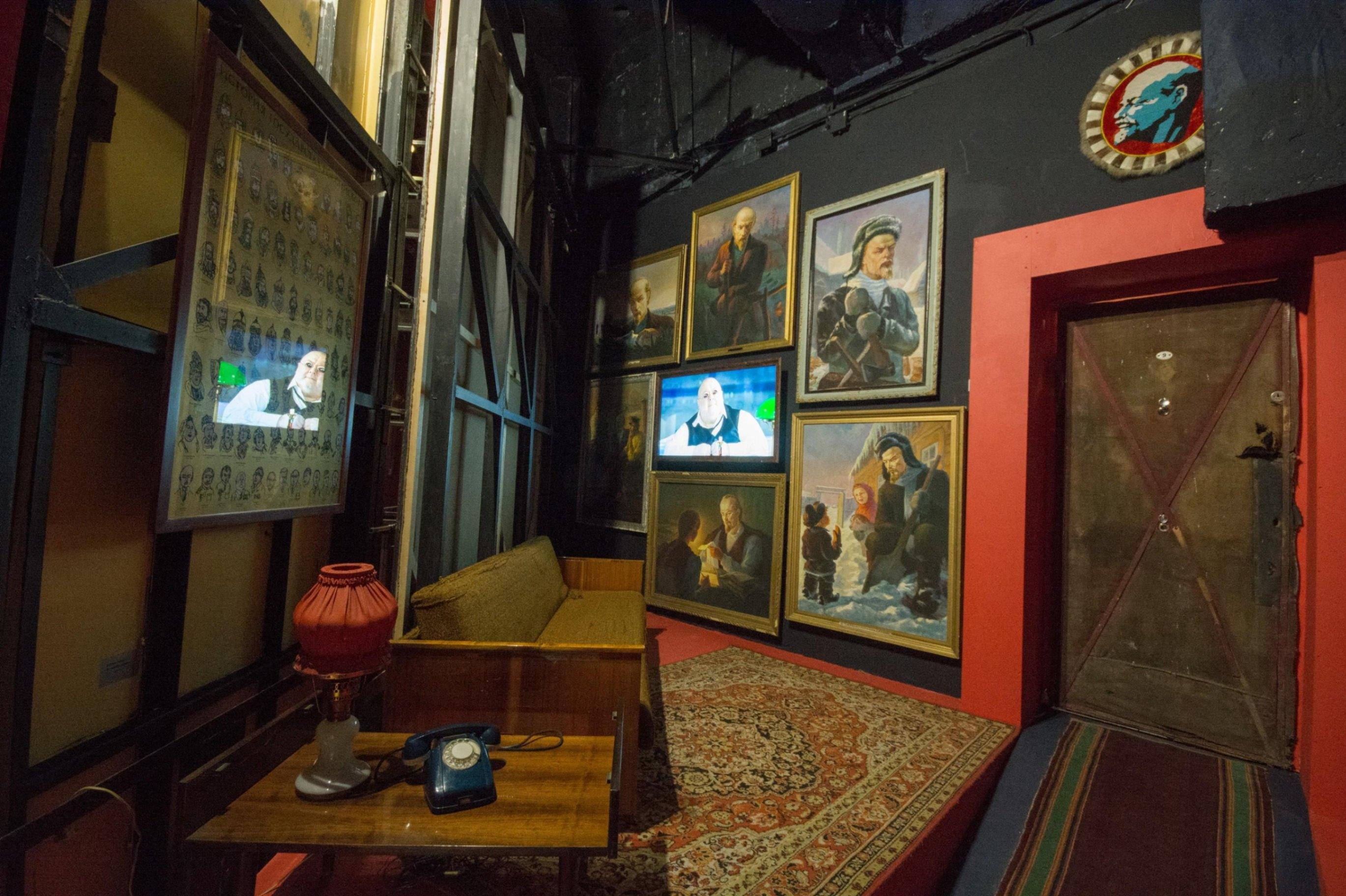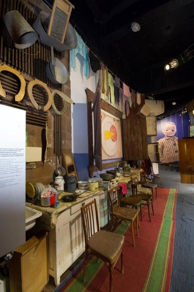 Для экспозиции «Советская изнанка» был расчищен технический коридор за Красными залами, посвященными истории прошлого, – на оборотной стороне появилось пространство о советской бытовой повседневности. В него можно попасть через множество новых входов, которые выведут посетителя на изнаночную «улицу» того времени. Тут все буквально забито вещами, витринами служит тотальная инсталляция из зависших над полом шкафов и стенок, внутри которых можно найти артефакты эпохи.