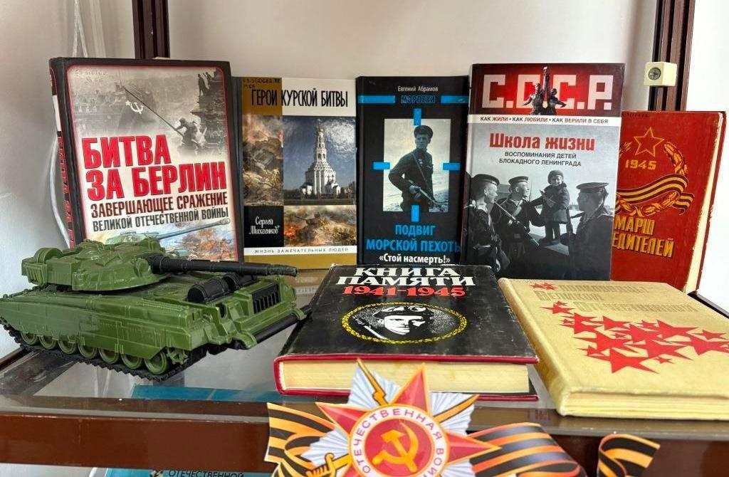 Книжная экспозиция посвящена 80-летию Победы в Великой Отечественной войне.