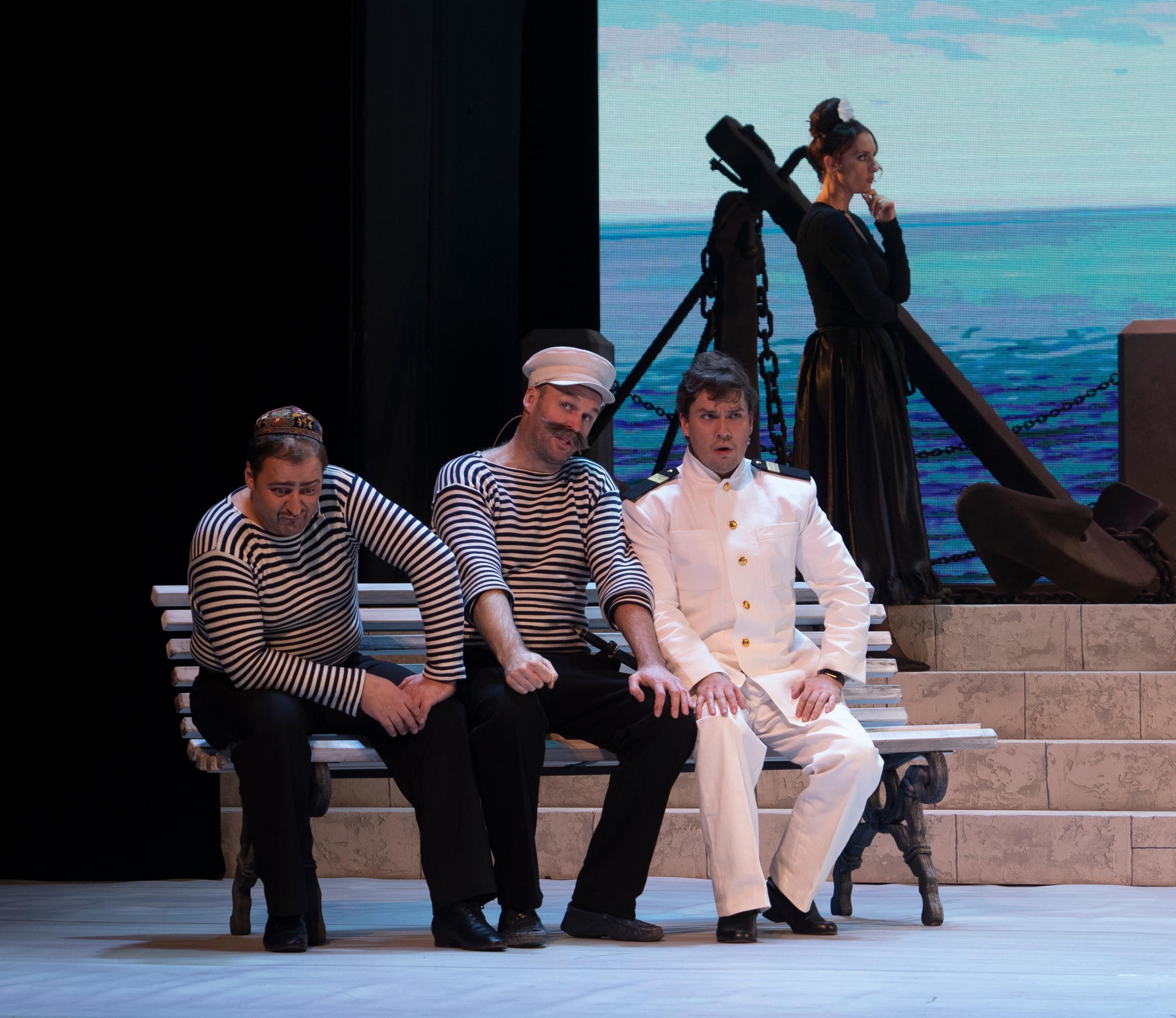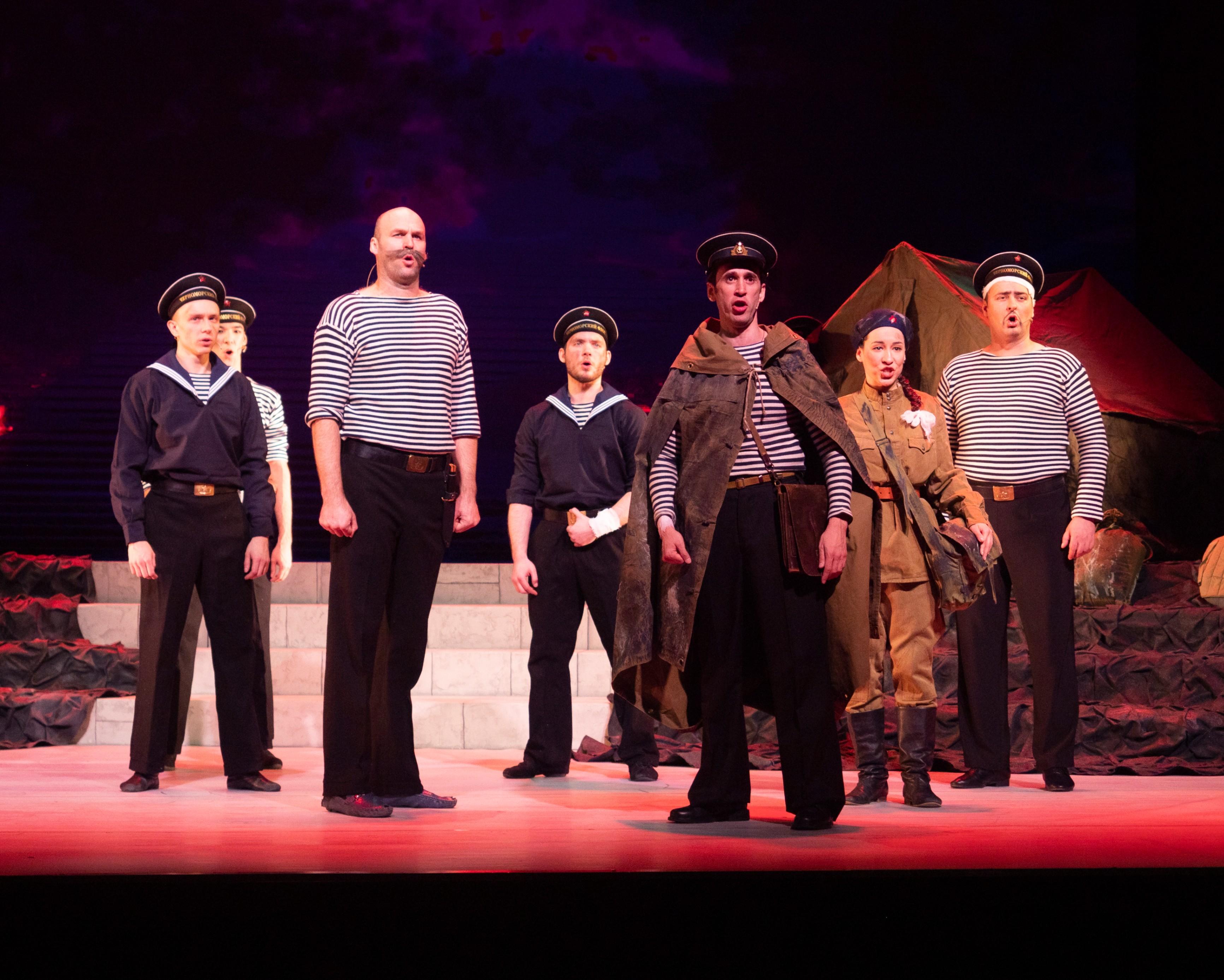 В основе этой динамичной и зрелищной постановки – героические времена и мирная жизнь города Севастополя. Живой оркестр, эффектная хореография, комедийные сцены и трогательная музыка эмоционально окрашивают непростые отношения героев, их историю любви и верности.