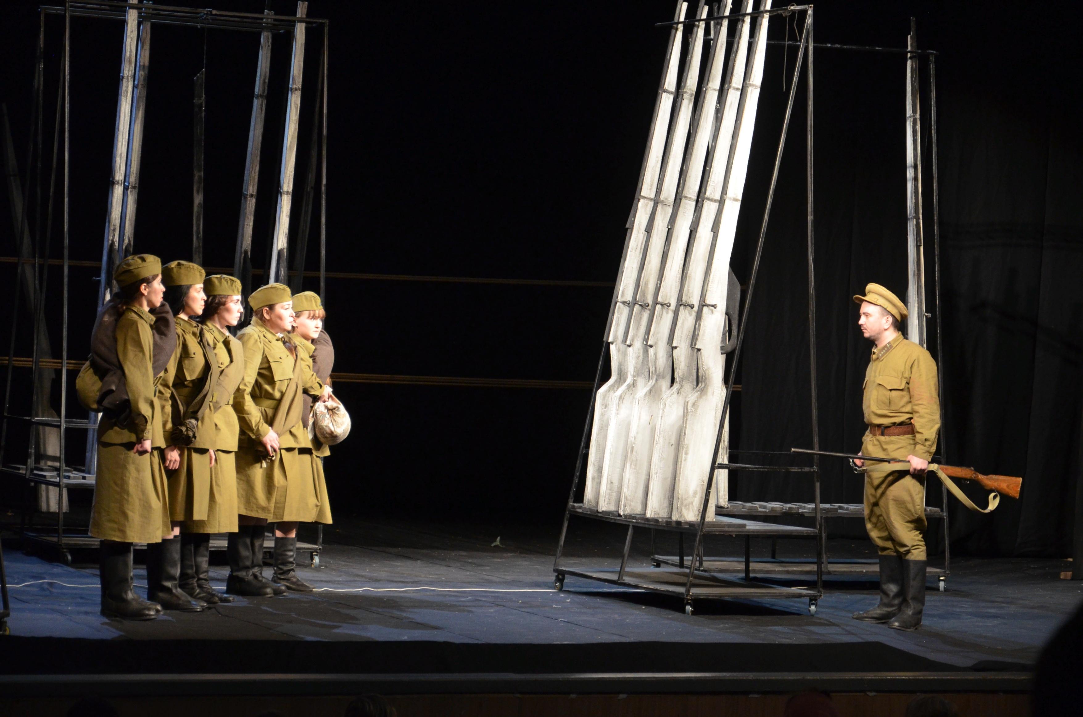 Спектакль посвящается великим женщинам, которые защищали Родину, сражались за мир на земле, не щадя своей жизни, своего счастья и своей любви.