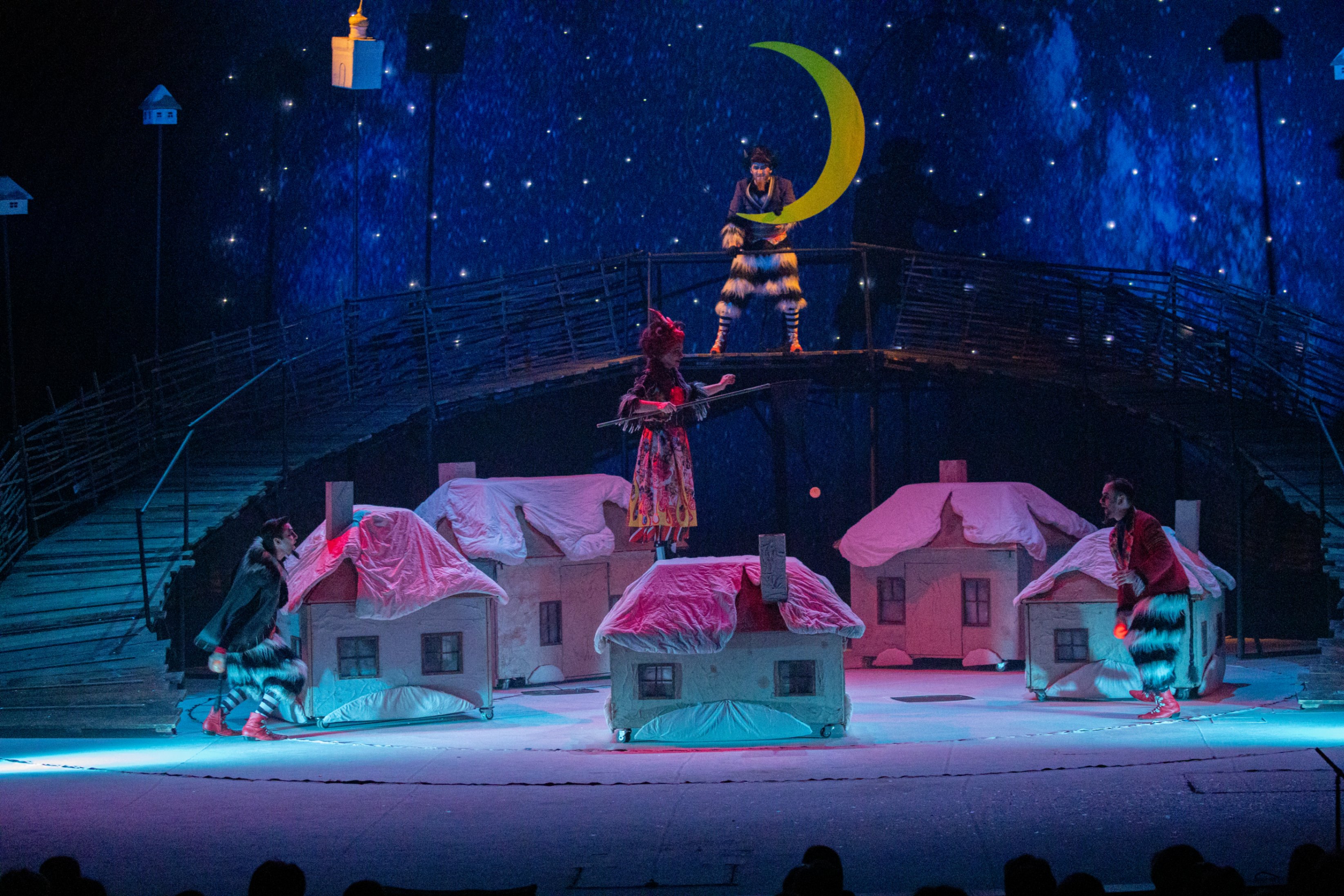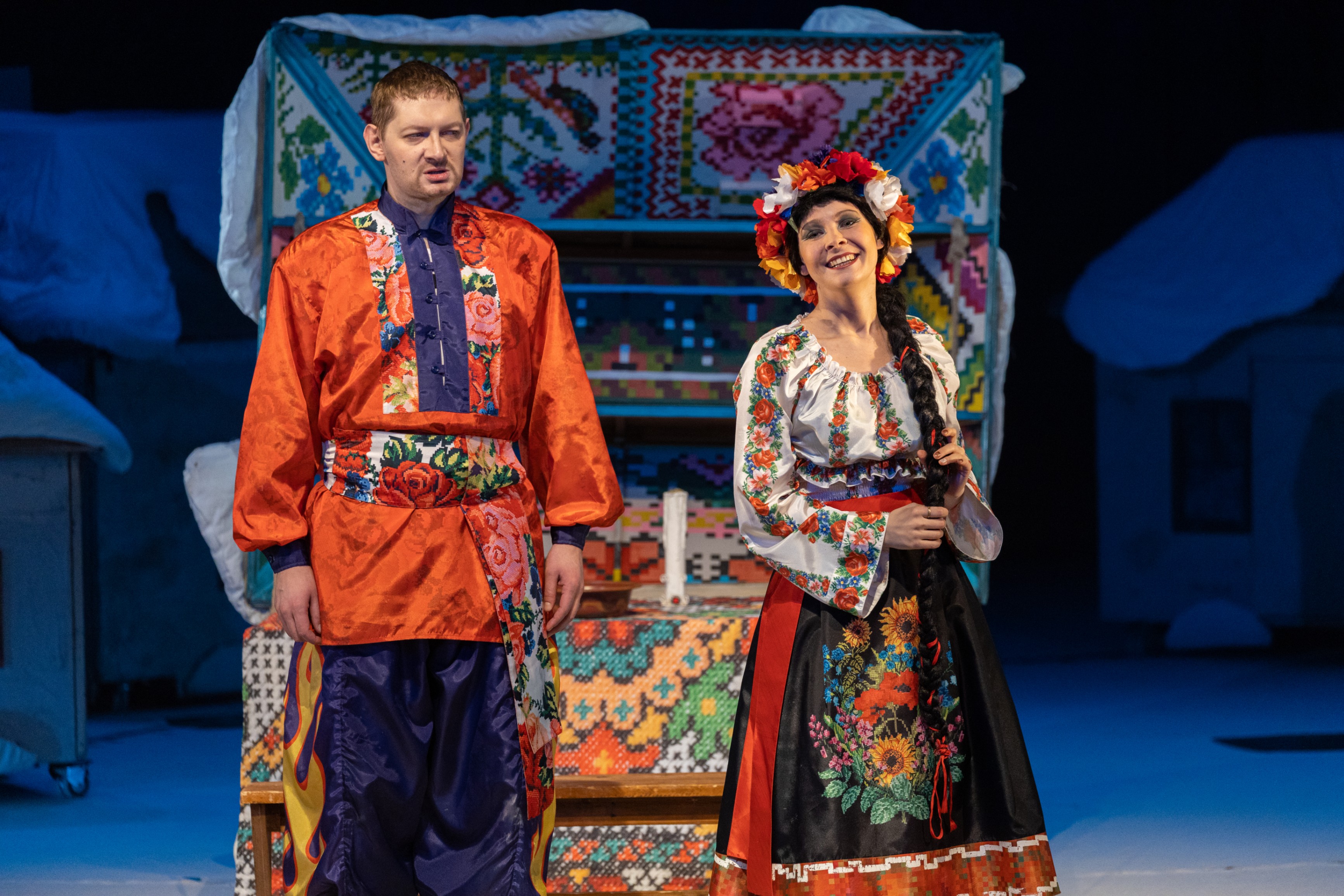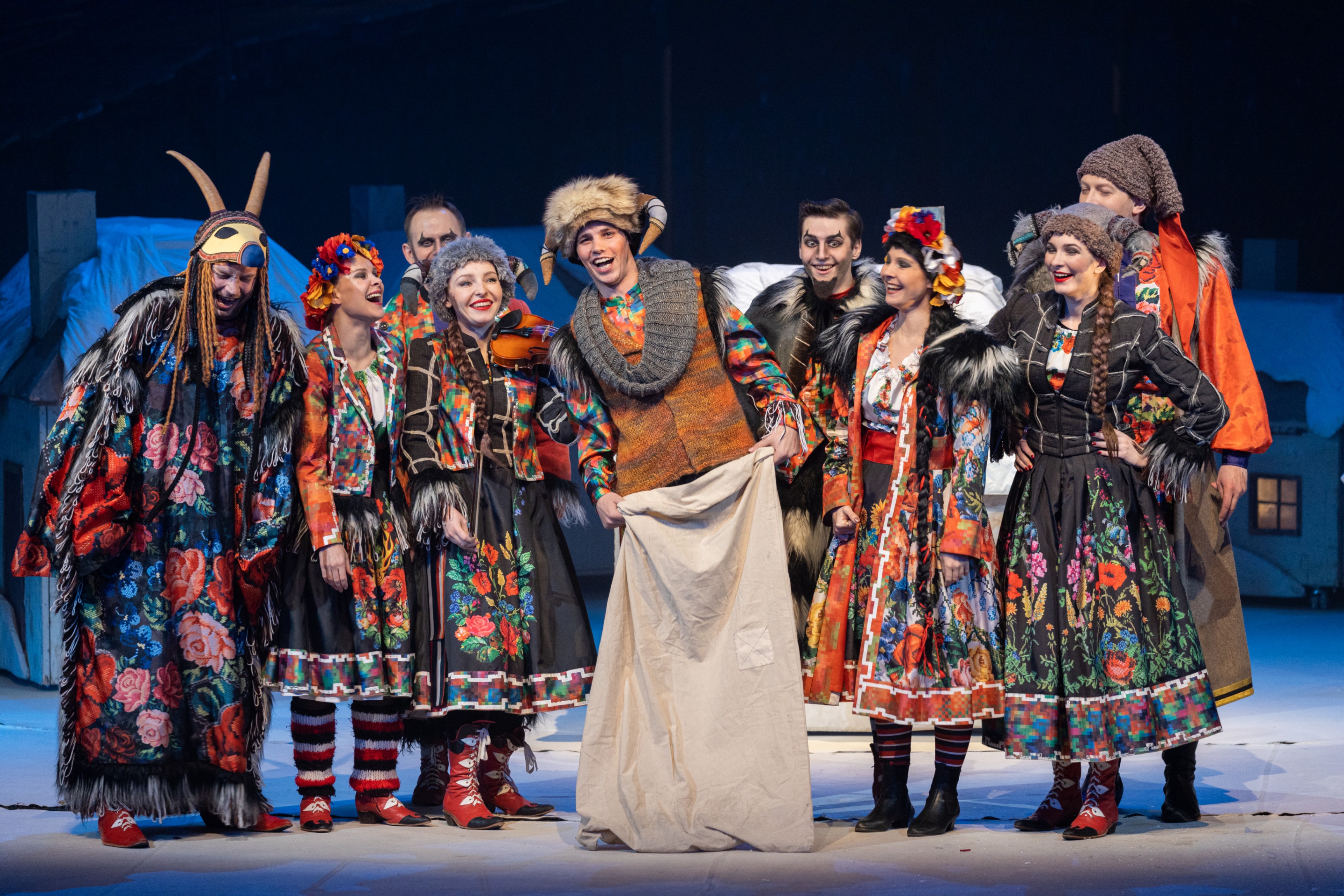 Красочное, яркое, динамичное действо, в котором есть место волшебству, иронии, лирике, где шумно гуляет Коляда, тоскует от «неразделенной любви» кузнец-богомаз Вакула, смущает души православных разбитная компания нечистой силы, но все же торжествуют добро, любовь и свет.