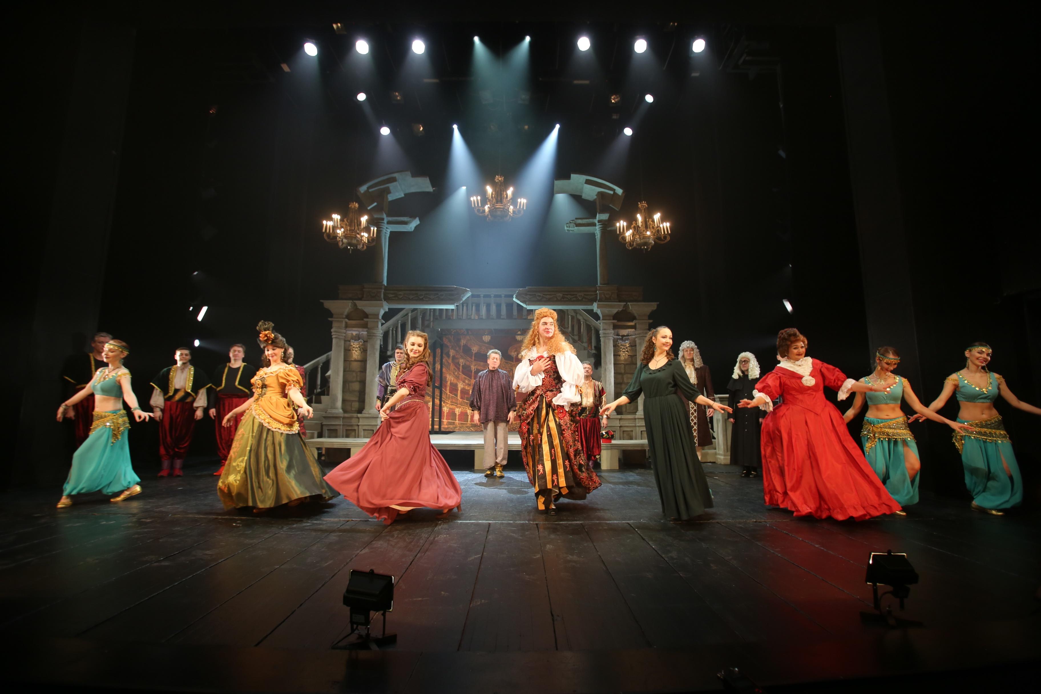 В основе сюжета – репетиция пьесы «Мещанин во дворянстве» в мольеровском театре – поздним вечером, переходящим в бессонную ночь, без командора Жана Мольера (он болен), «сегодня» артисты получили роли – «завтра» играют в Шамборском замке перед королем.