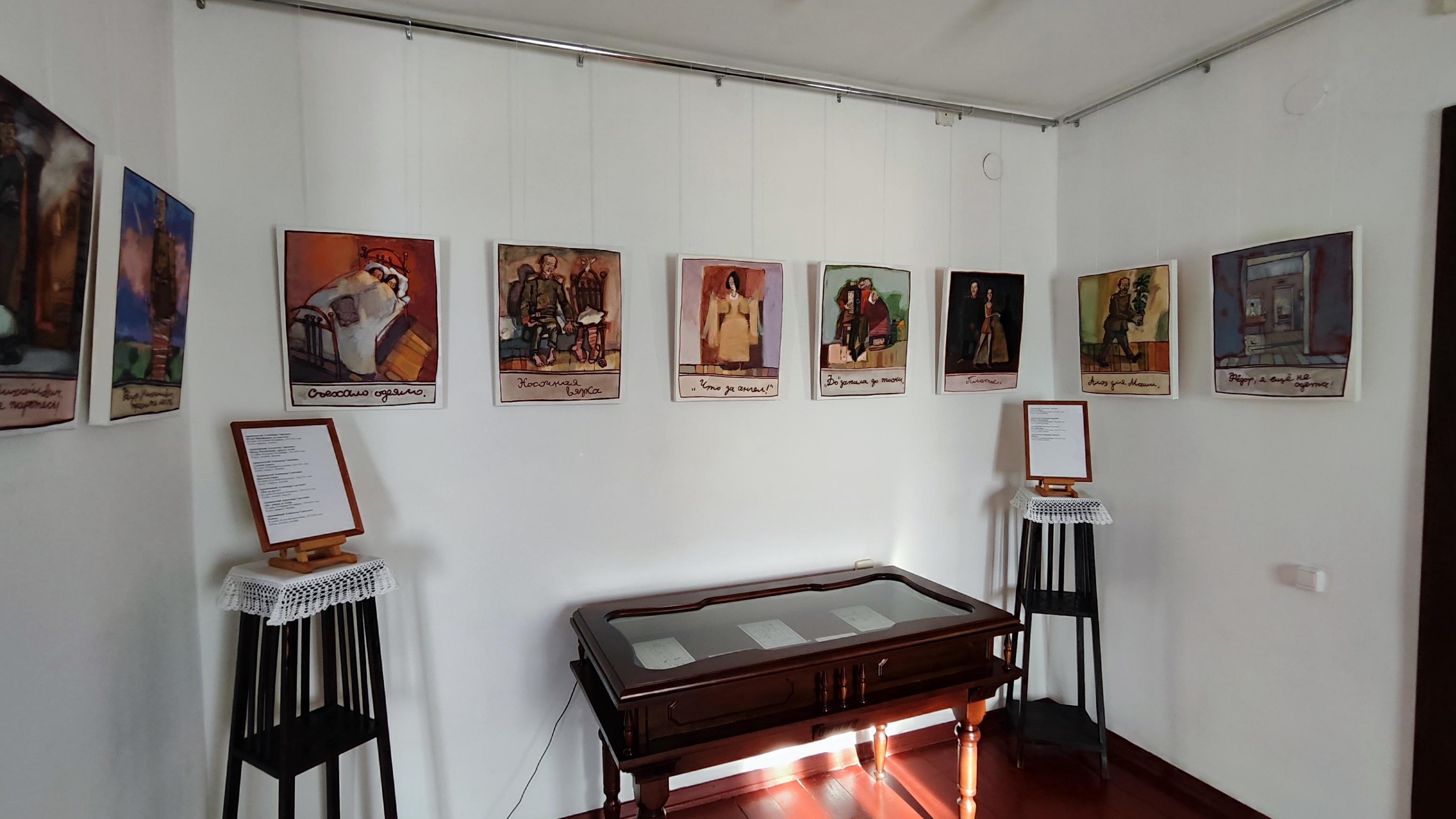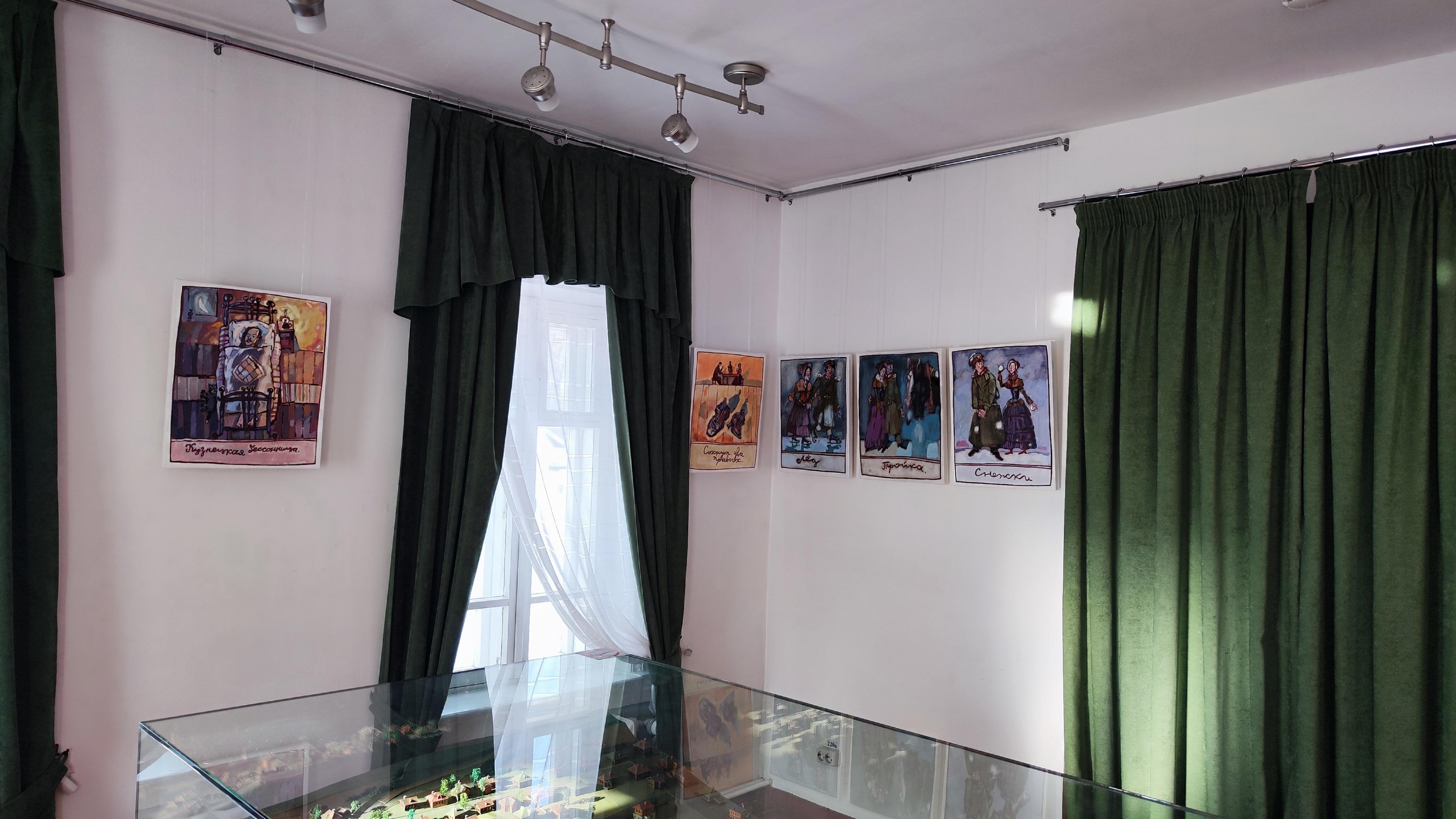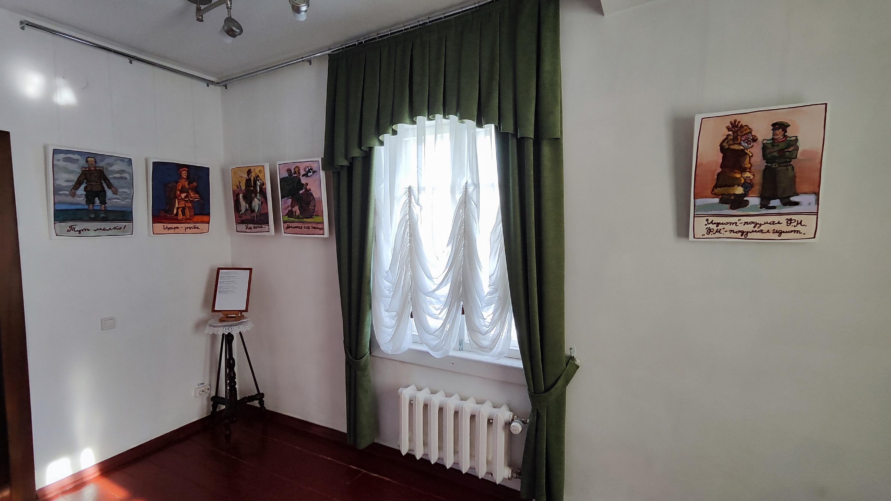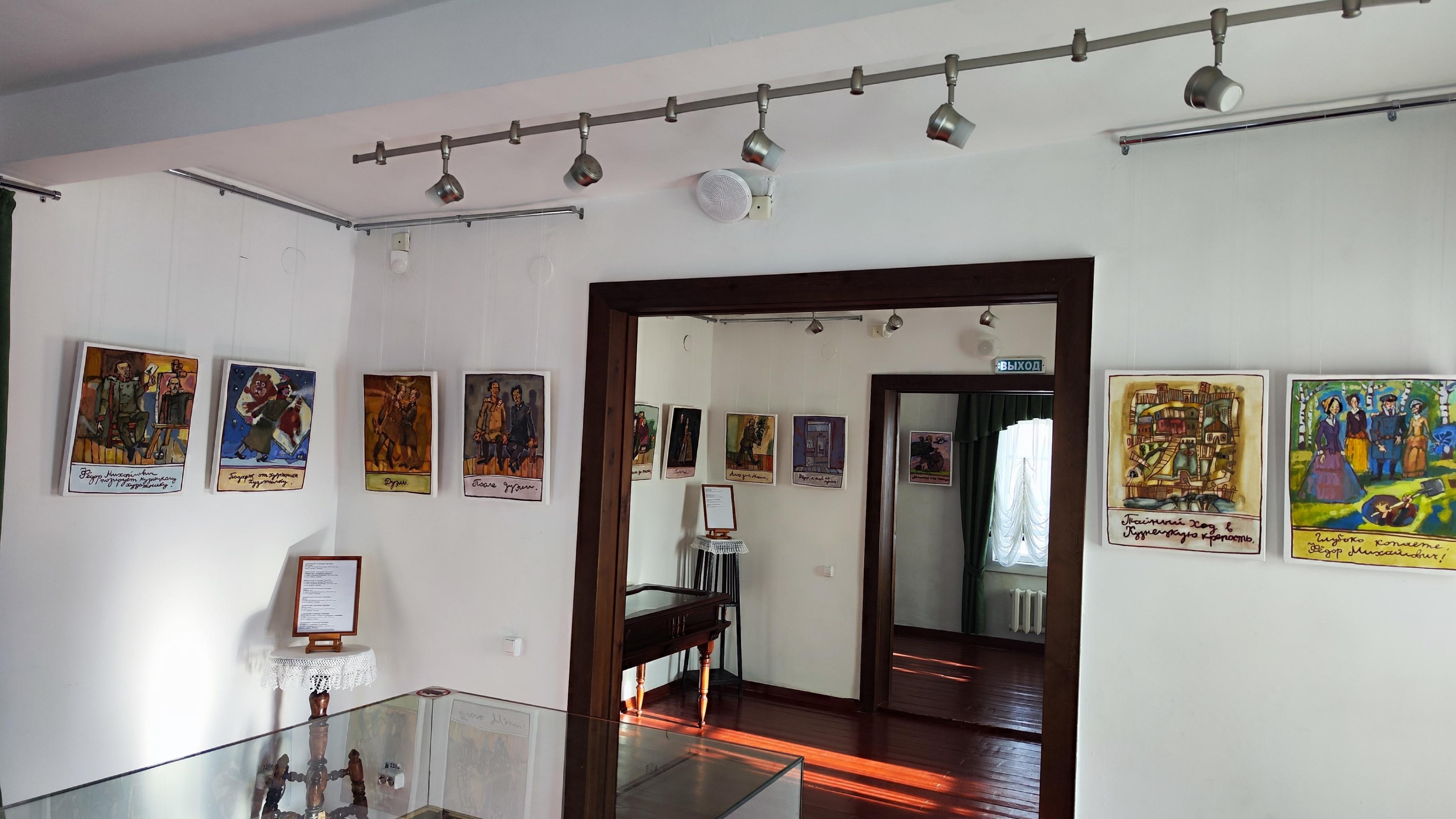 Экспозиция посвященная кузнецким событиям биографии Ф. М. Достоевского. В залах музея представлена серия графических работ новокузнецкого художника Александра Сергеевича Архиповского.