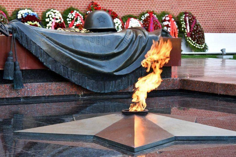 У Кремлевской стены горит символ памяти о тех людях, которые отдали свои жизни в борьбе против немецких захватчиков.