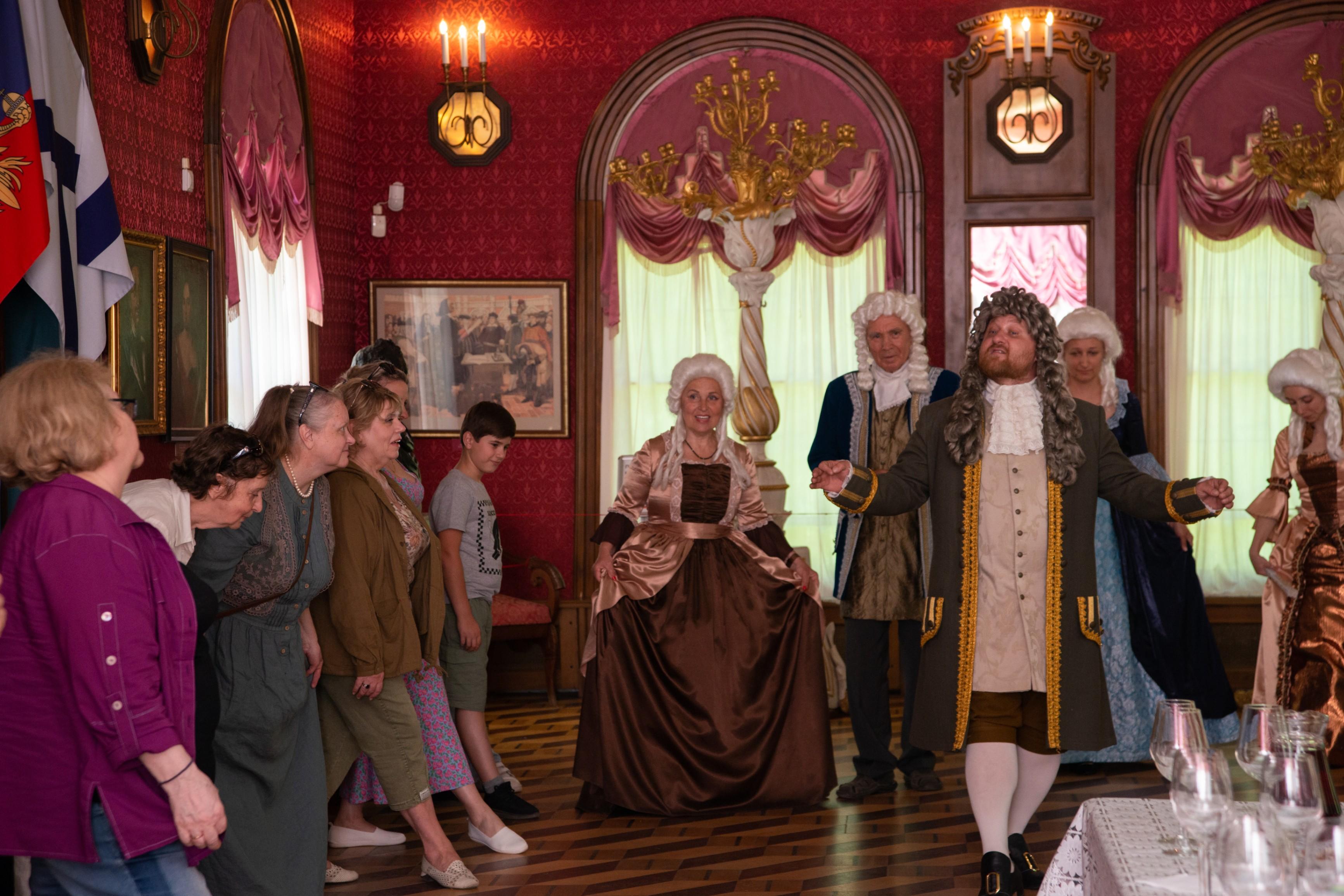 Роскошный интерьер начала XVIII века, великолепные костюмы прекрасных дам и галантных кавалеров, волшебные звуки менуэта перенесут гостей в эпоху Петра Великого.