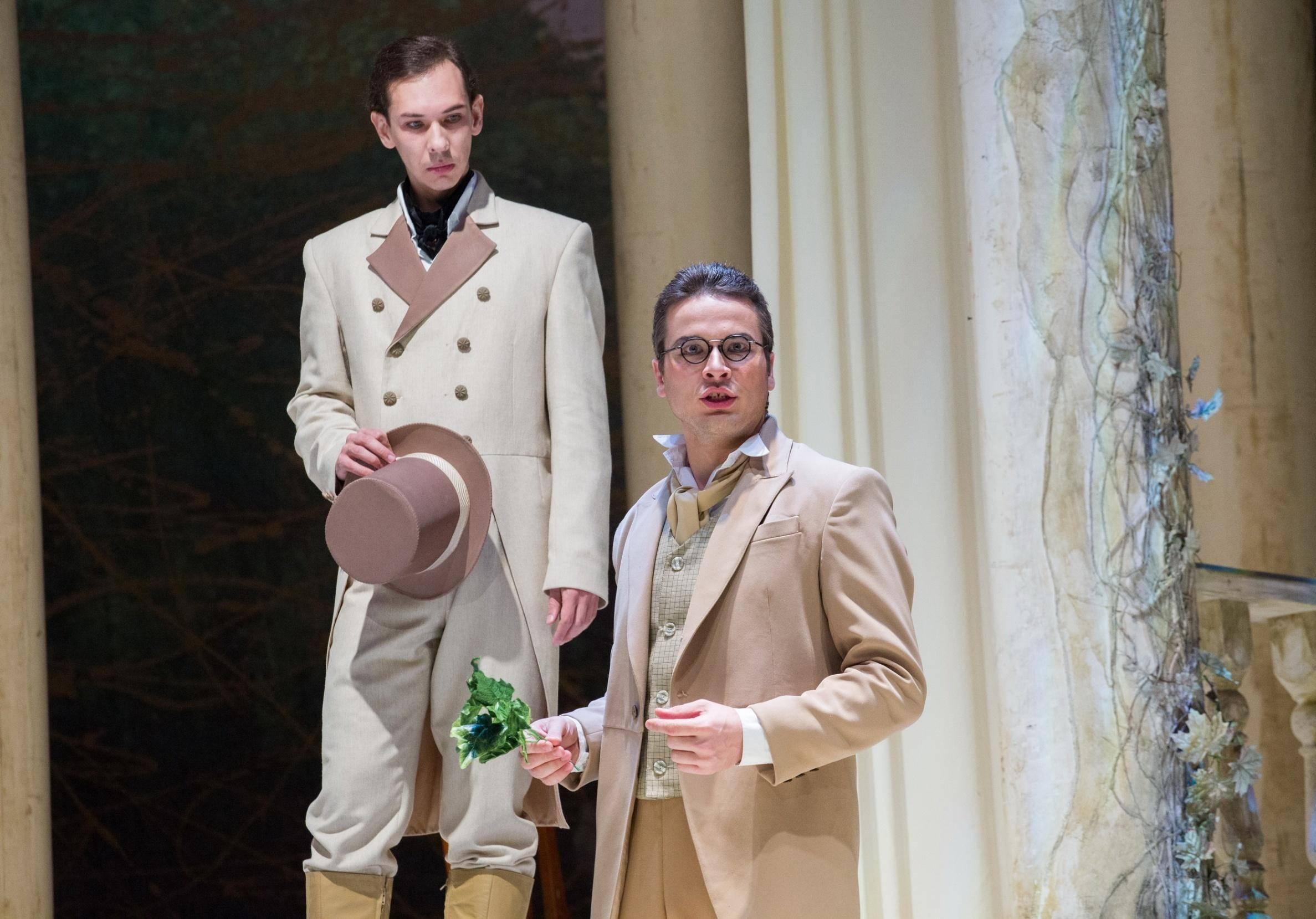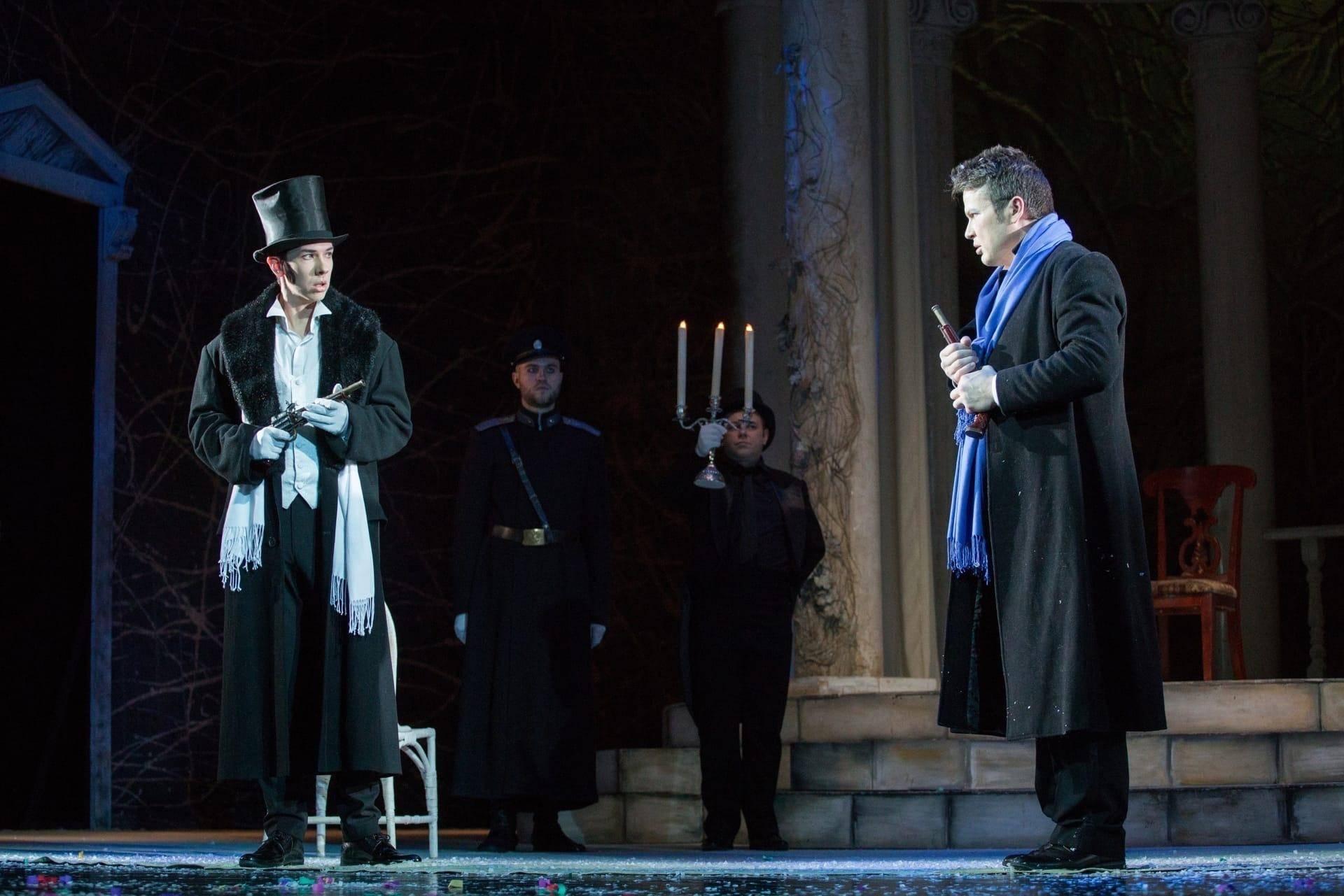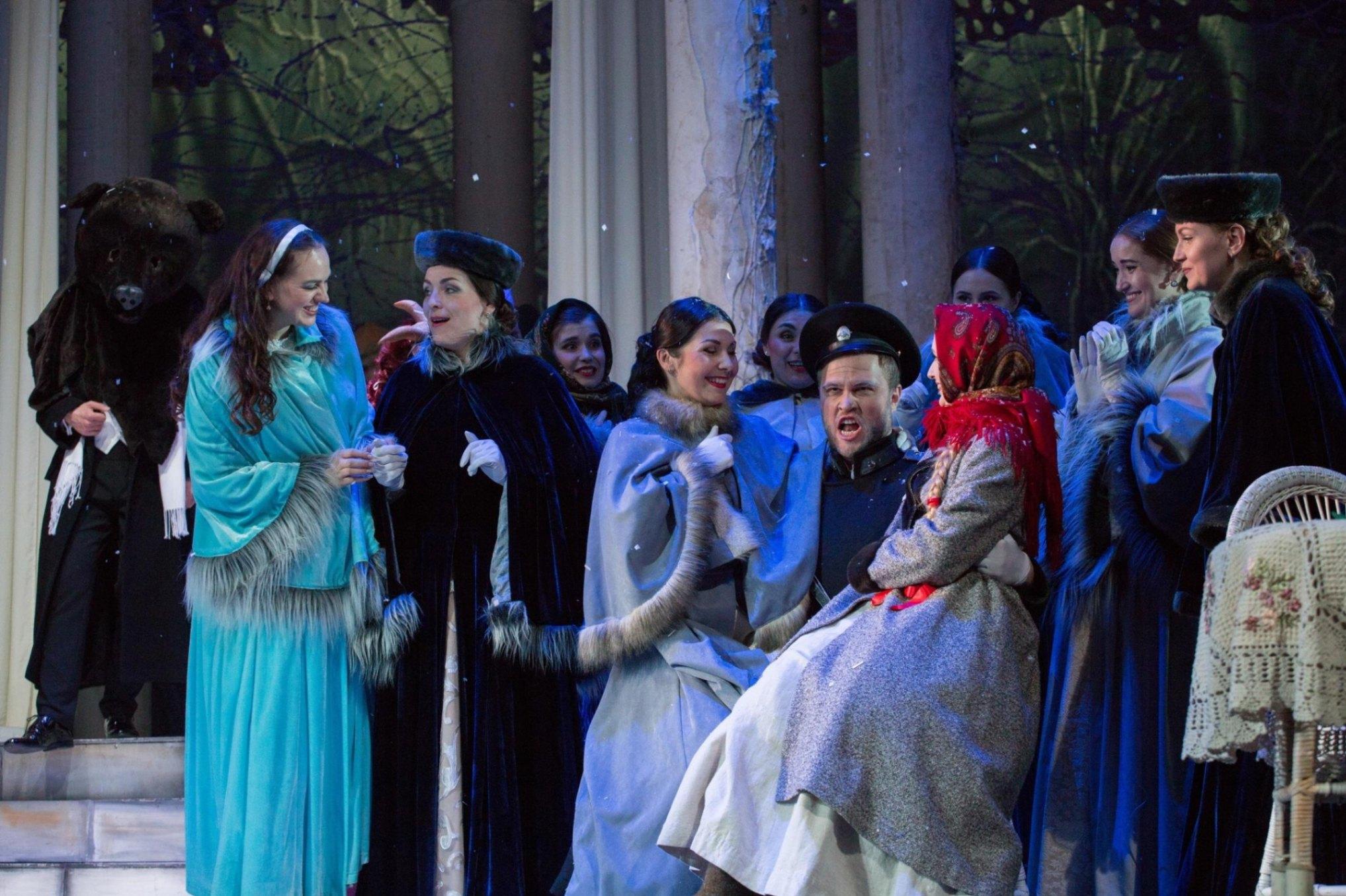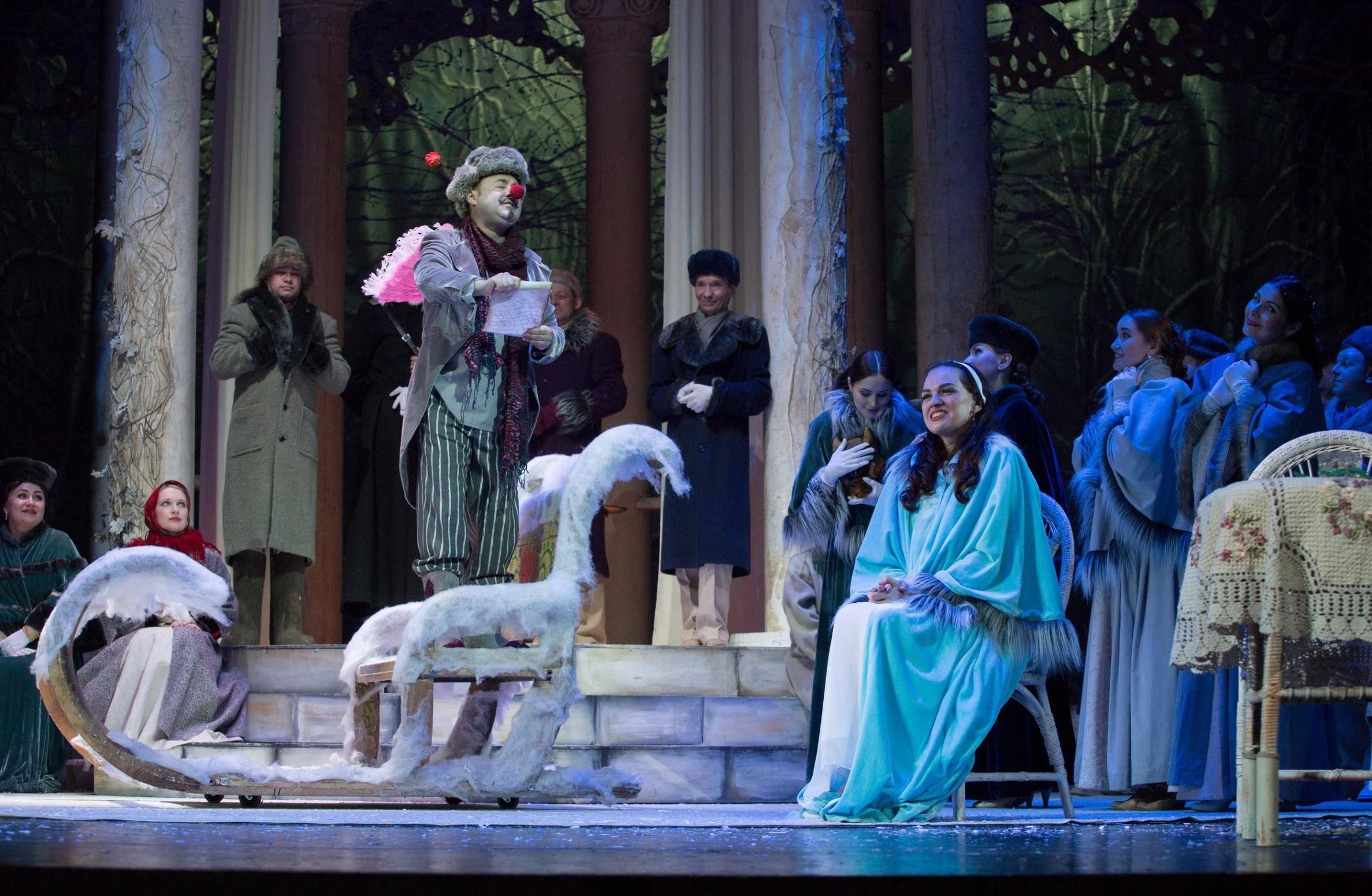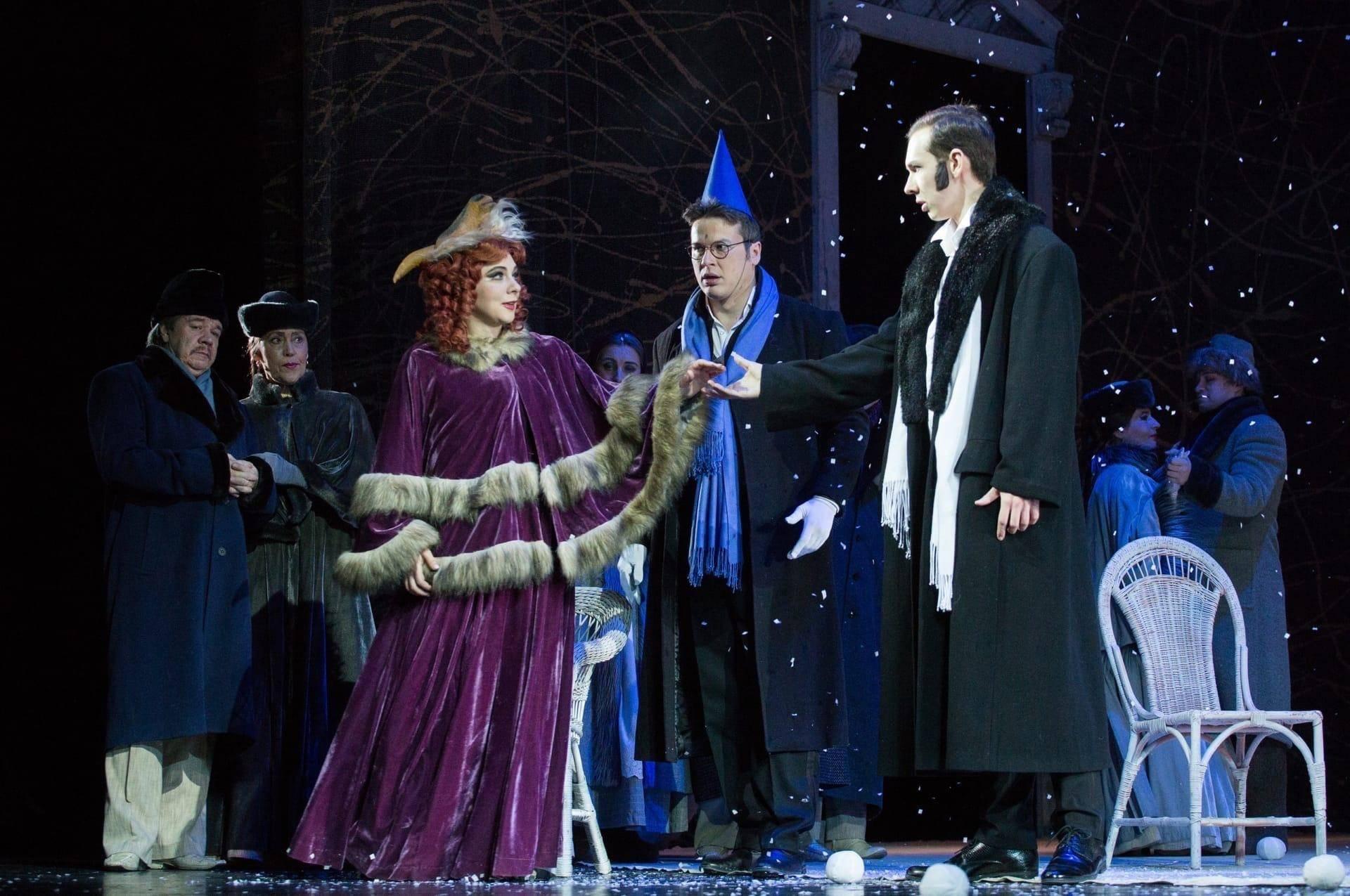 Народный художник России Вячеслав Окунев нашел изысканное, стильное решение декораций и костюмов, погружающее зрителей в эпоху Петра Чайковского. С помощью почти невесомых материалов, кружевных переплетений он создает на сцене атмосферу легкости и воздушности девичьих грез. Сменяют друг друга времена года, жизнь совершает свой круговорот – в спектакле этому найдено зримое решение. И на открытом пространстве сцены кружится, мечется, летает – живет юная душа. На площадках республики представляется литературно-музыкальная композиция, созданная по опере Петра Чайковского и роману Александра Пушкина «Евгений Онегин».