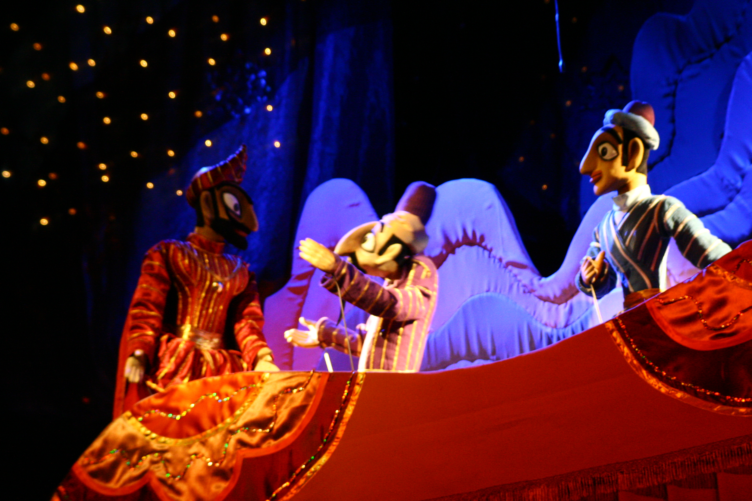 Этот спектакль изобретательно придуман и отлично сделан. По мнению режиссера Николая Боровкова, художник – самый главный человек в театре кукол. Художник-постановщик Алевтина Торик, лауреат «Золотой маски», создала роскошные функциональные декорации и красивых глазастых кукол. Подвижные ширмы в виде слонов и верблюда помогают передать чарующую атмосферу Востока, напоенную чудесами и превращениями.