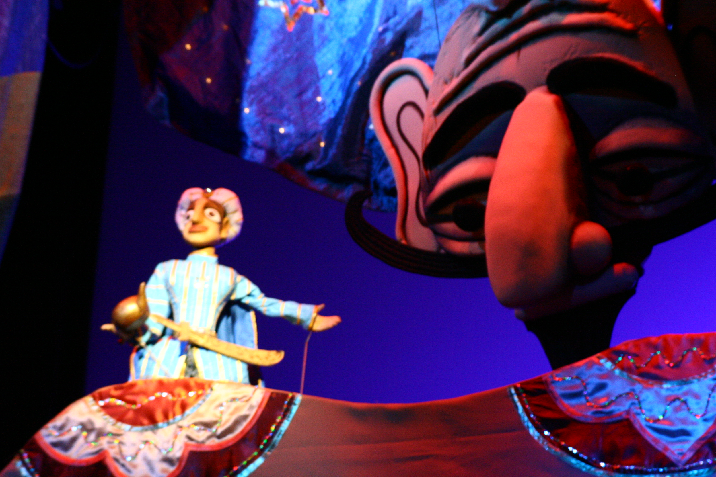 Таинственная история о юном Аладдине, о царевне Будур, о волшебной лампе и о джинне, который может исполнить абсолютно любое желание своего господина. На сцене – насыщенное действие, юмор и яркие восточные краски. Удивительно, но средневековая арабско-персидская сказка из «Тысячи и одной ночи» в XXI веке выглядит на редкость современно, особенно призыв: «Меняем старые лампы на новые!».