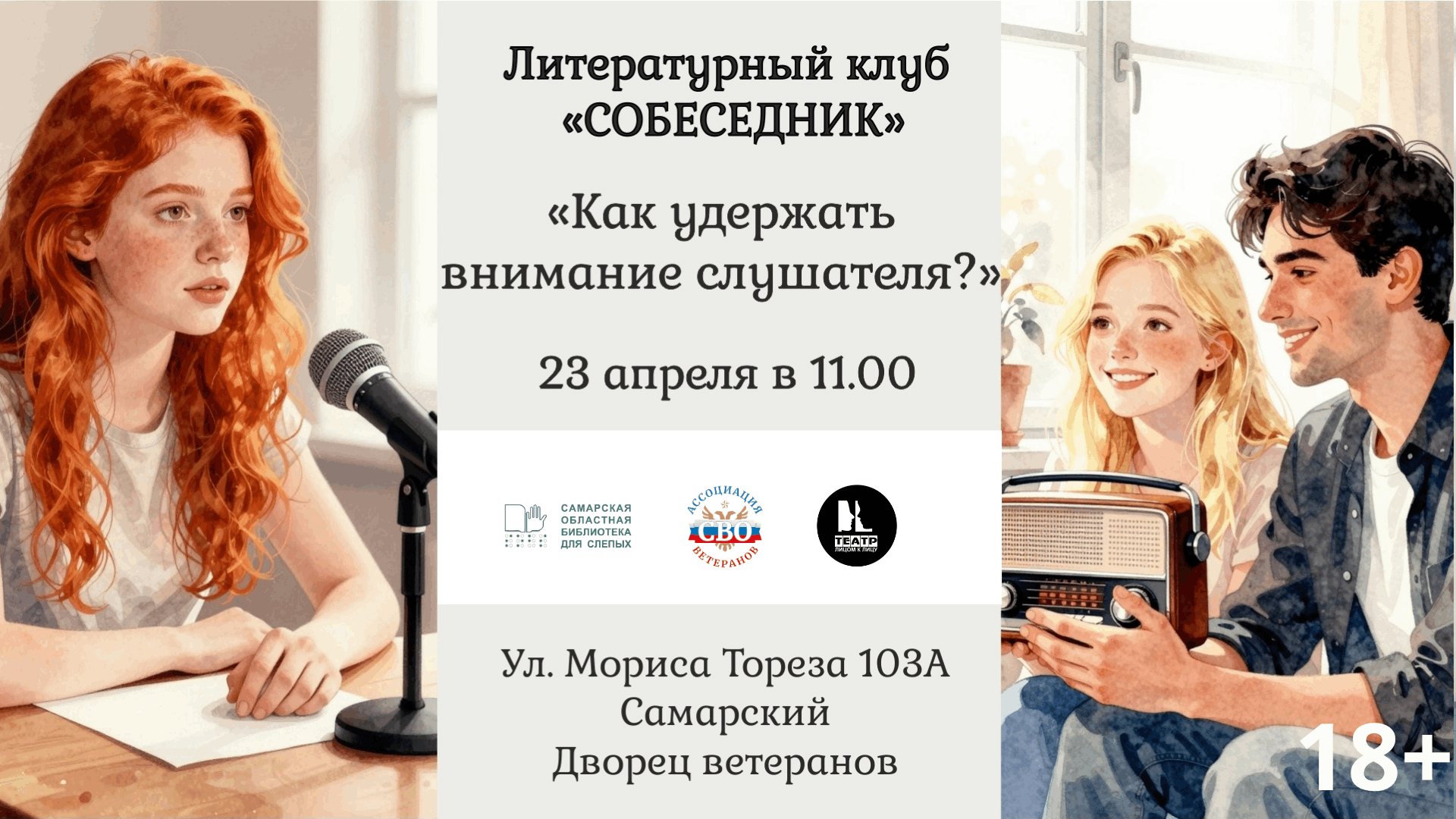 Встречи проводятся Самарской областной библиотекой для слепых совместно с Ассоциацией ветеранов СВО и частным драматическим театром "Лицом к лицу"