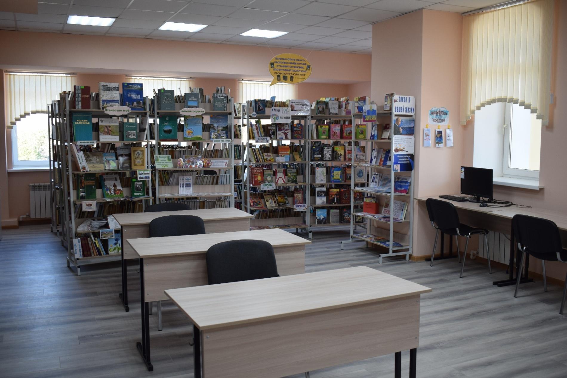 В ней созданы комфортные условия для читателей: просторное помещение, хорошая освещенность, удобная мебель. Библиотека оборудована компьютерами и оргтехникой, имеет доступ в сеть Интернет.