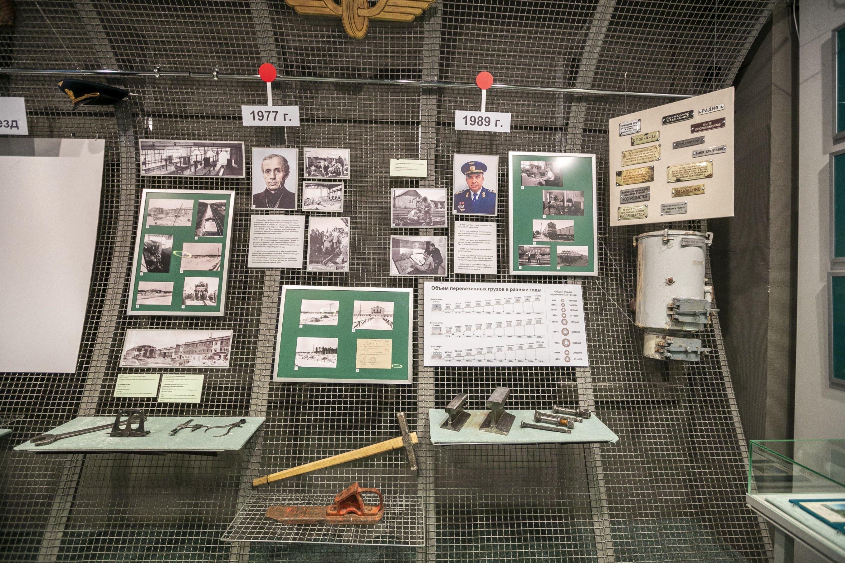 На экспозиции представлены более 80 уникальных музейных предметов, а также фотографии и документы из фондов Сургутского краеведческого музея, иллюстрирующие строительство северного направления железной дороги Тюмень – Сургут, которое осуществлялось с 1966 по 1975 гг.