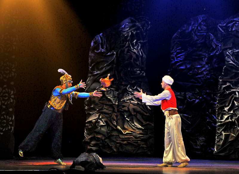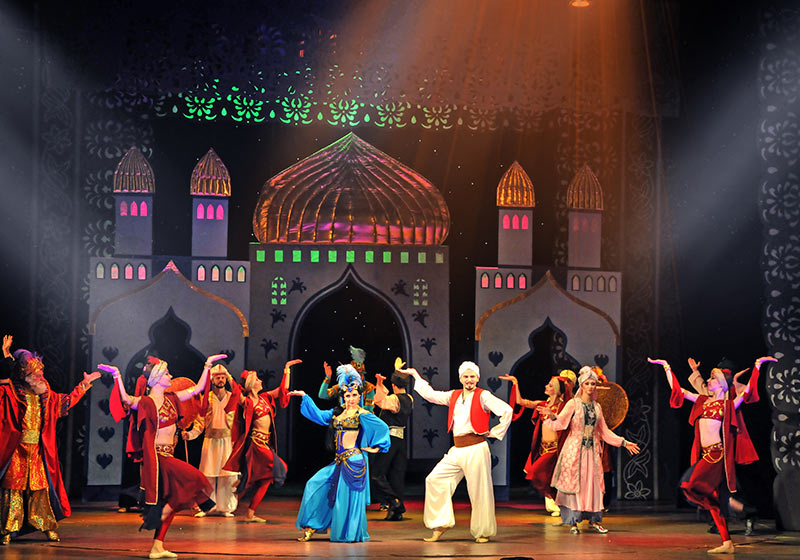 Творчество композитора Егора Шашина уже хорошо знакомо волгоградскому зрителю: «Царевна-лягушка», «Поди туда, не знаю куда», а также премьера юбилейного сезона «Следствие ведет Снегов и К». После каждого из этих спектаклей большие и маленькие зрители выходят с яркими впечатлениями, напевая полюбившиеся мелодии. Так будет и после просмотра «Аладдина»: мелодии в восточном стиле, песни, танцы, приключения героев не оставляют никого равнодушным.