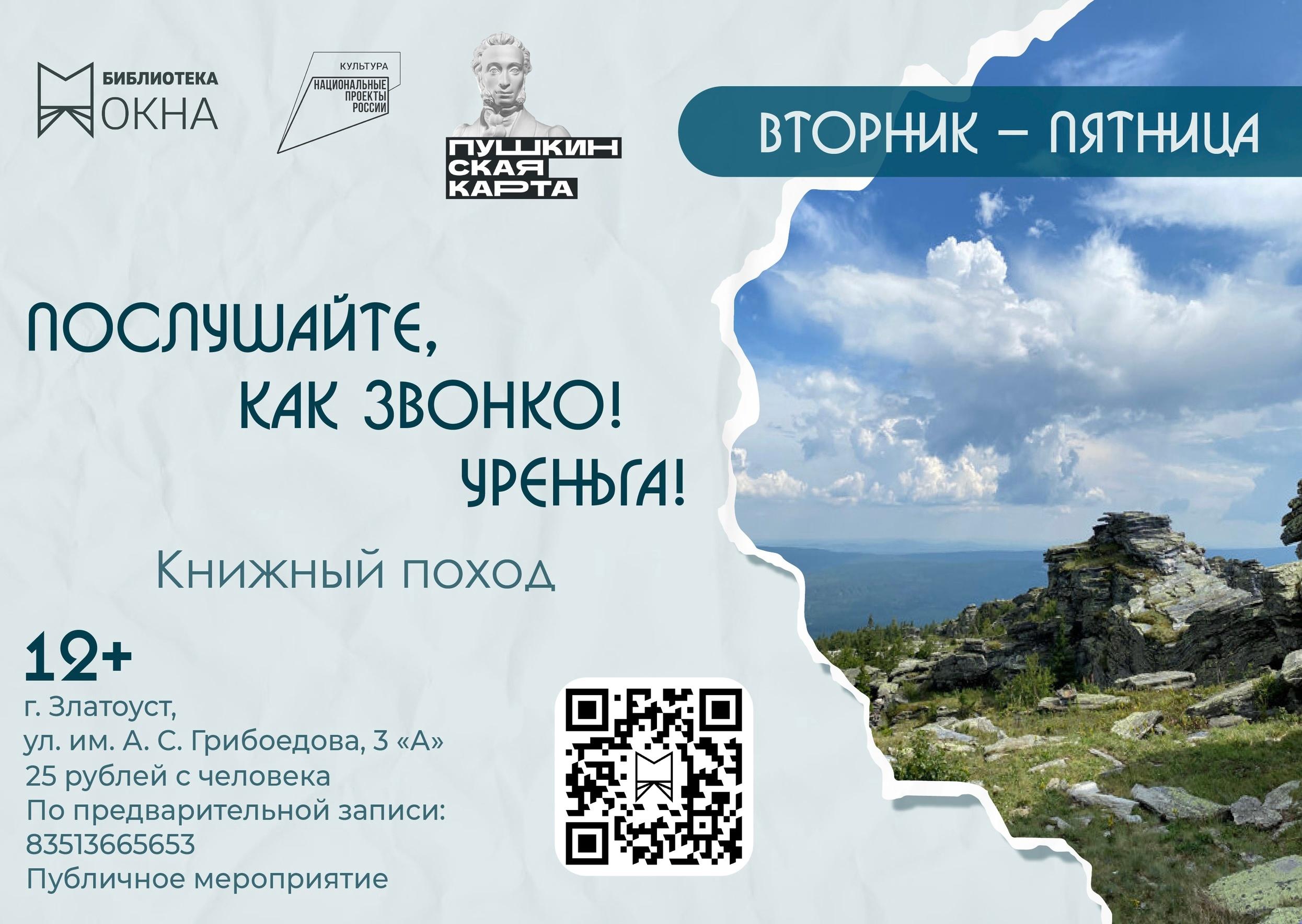 Хребет Уреньга для златоустовцев знаковое место, привычное название и удивительные истории. Библиотекари приглашают молодежную аудиторию на интерактивную «походную» программу, которая станет прекрасным поводом отвлечься от повседневной суеты, погрузиться в мир книг, приключений и удивительной природы. Всем пригодятся эрудиция, умение работать в группе, артистические способности, чтобы найти занимательные факты, детально разобраться в топонимике вершин хребта, озвучить страницы произведений об Уреньге, проложить маршрут по туристической карте. Стать участником программы может команда из пяти человек. Необходима предварительная запись по телефону 8(3513)66-56-53.