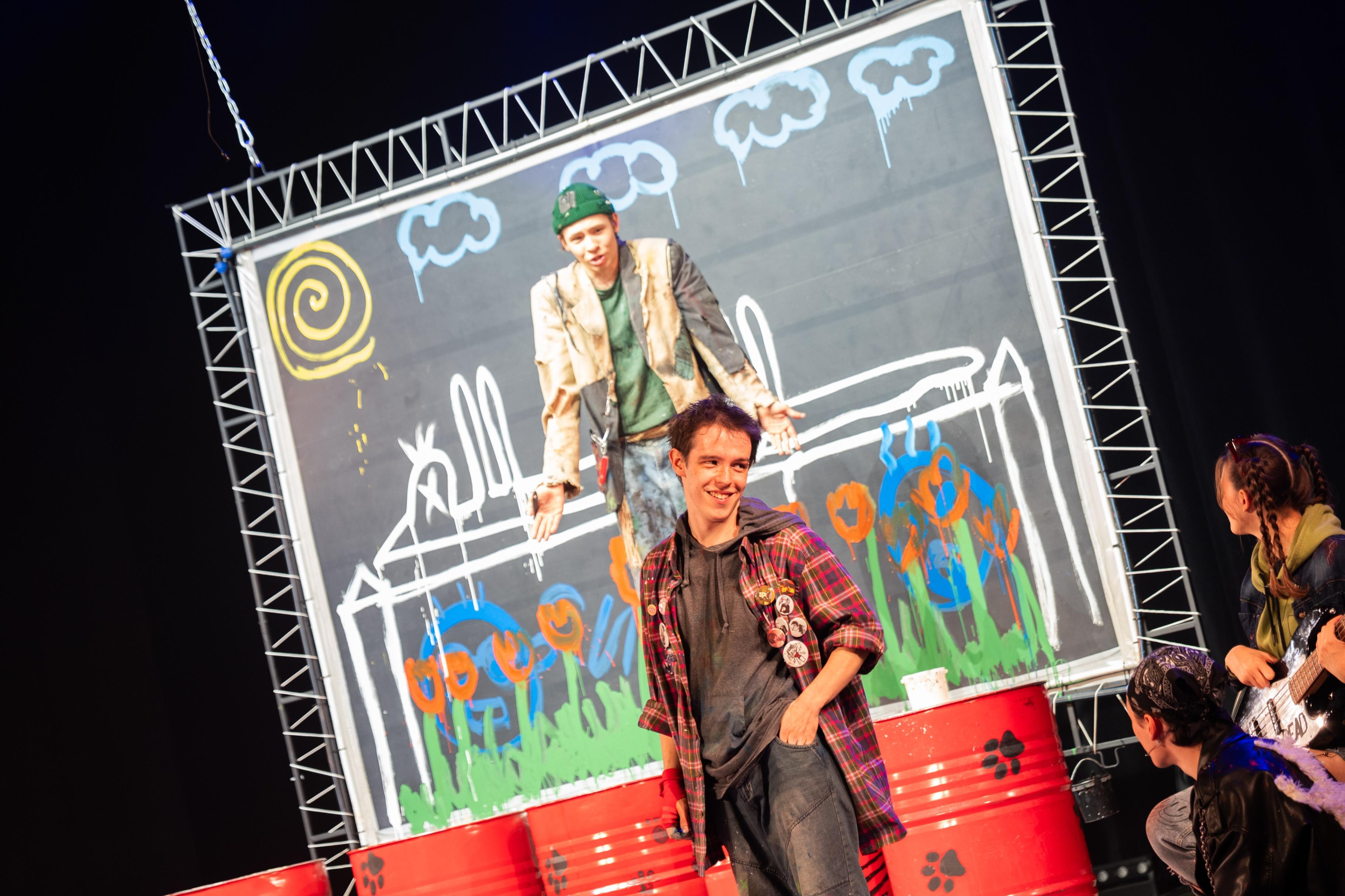 Главные герои творят свою историю, и это не просто выражение – они рисуют на экране все, с чем сталкиваются. Как и в жизни – краски смешиваются, рисунки наслаиваются, среди ярких картинок появляются темные пятна сомнений и страхов. Как вернуть экрану первозданную красоту? Получится ли у мальчиков сохранить чистоту и простоту после всех испытаний? Смогут ли они и в этот раз перевести все в игру или они уже слишком взрослые, чтобы играть в игры?