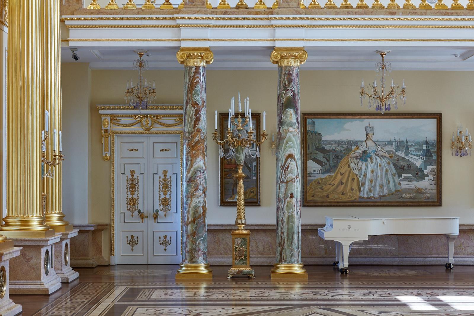 Большой дворец – монументальное здание с непростой историей. В 1785 году императрица Екатерина II приехала в Царицыно осмотреть резиденцию и осталась недовольна. Почти готовый главный корпус она велела снести до основания и начать строительство заново. Придворный архитектор Василий Баженов был отстранен от работы, подготовку нового плана поручили его ученику Матвею Казакову. На месте разобранного корпуса Казаков стал возводить грандиозное здание с высокой центральной галереей. К 1796 году Большой дворец был практически готов – только крыша оставалась временной, без декоративных элементов. Начались отделочные работы, но после внезапной кончины Екатерины II стройка в Царицыне прекратилась.