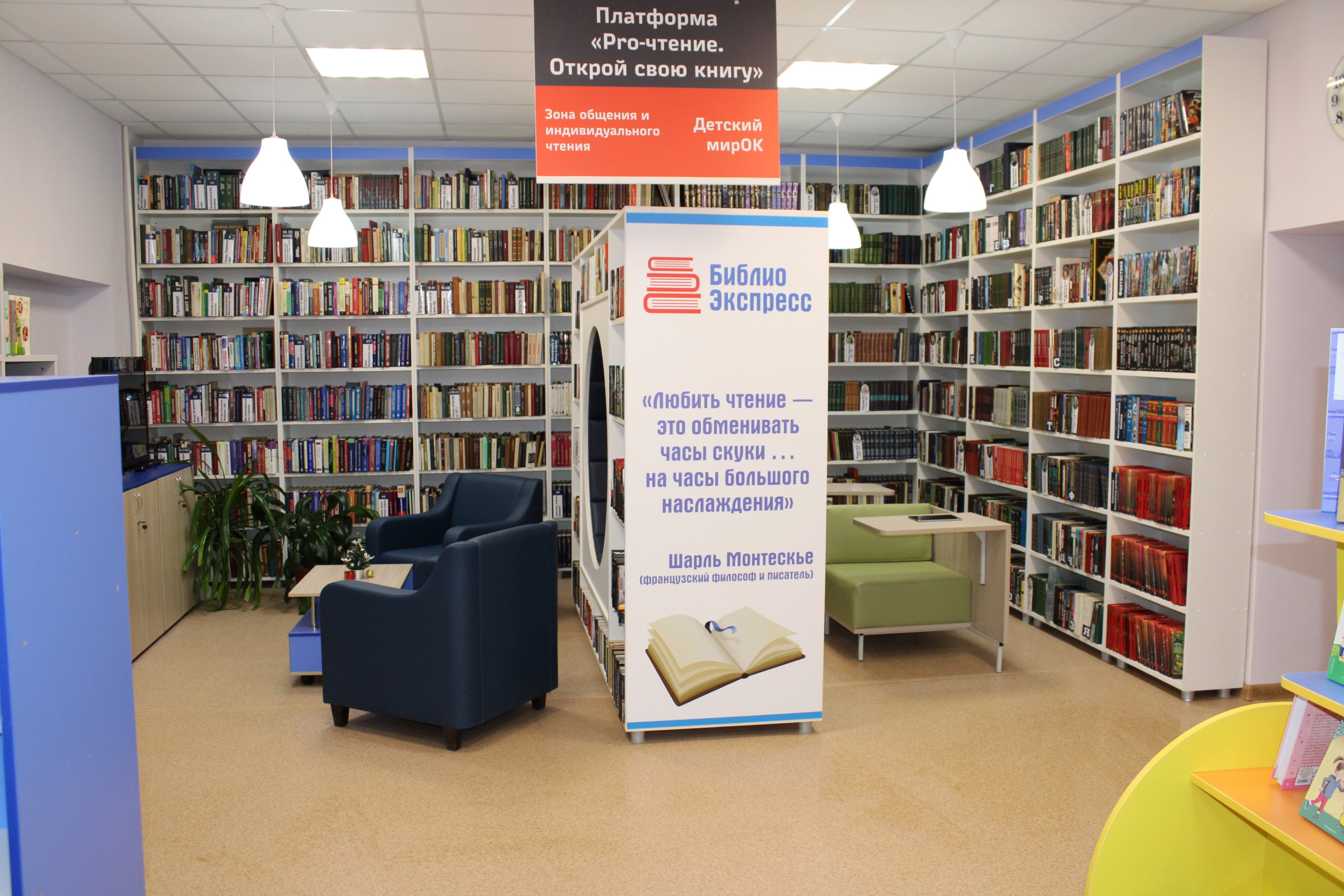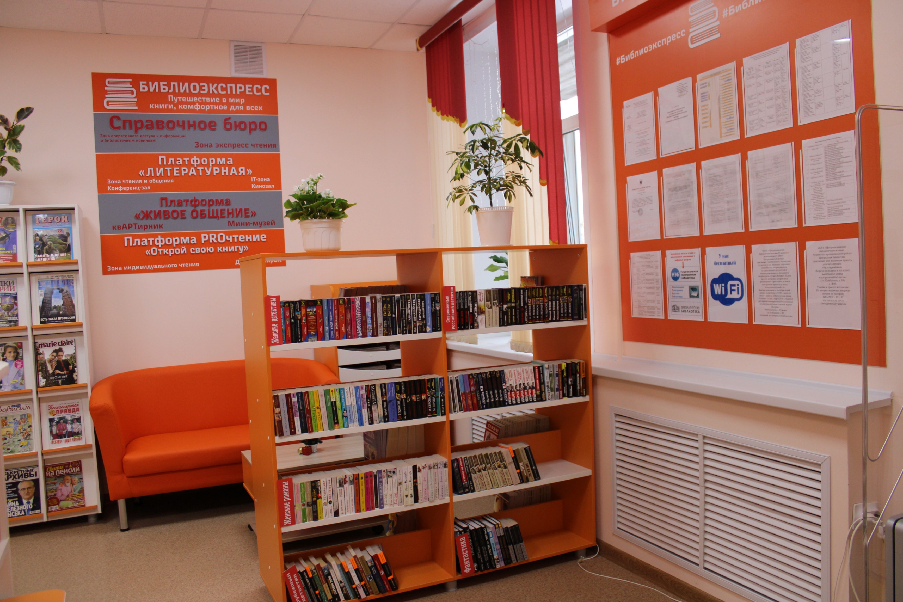 В функциональных зонах, плавно перетекающих друг в друга («Экспресс-чтение», «Литературная», «PROчтение», «Живое общение», «Детский мирОК», IT-зона «Интеллект-центр», «КвАРТирник»), жители всех категорий находят себе занятие по интересам и с пользой проводят время, обогащают свой интеллектуальный, творческий и культурный потенциал.
