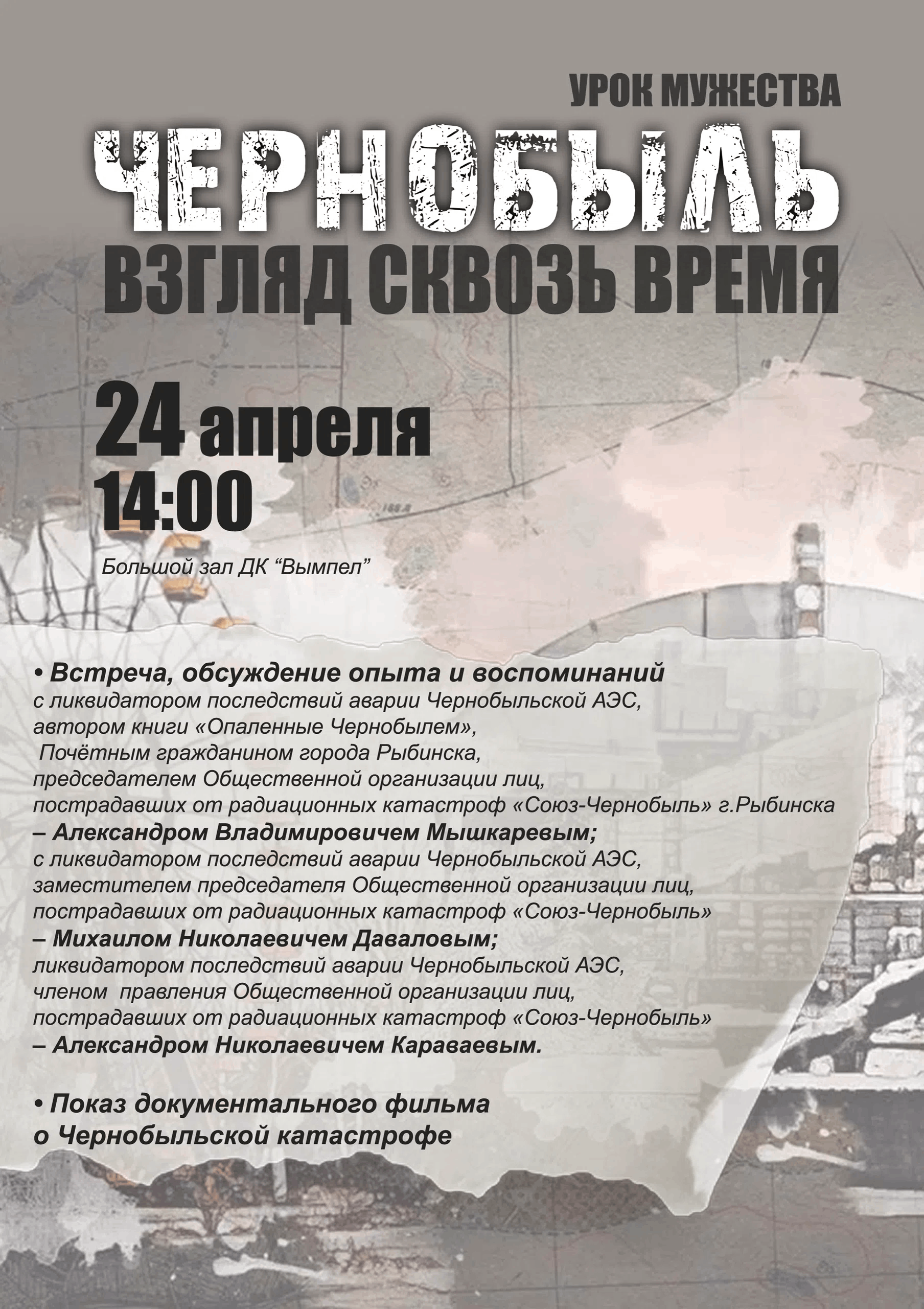 Вы можете стать свидетелями живого диалога с теми, кто принял на себя первый удар стихии, чтобы остальные могли жить спокойно. Узнать, что чувствовали люди, оказавшиеся в эпицентре величайшей техногенной катастрофы прошлого века. Задать вопросы тем, кто знает о цене мира не понаслышке.