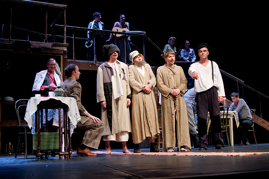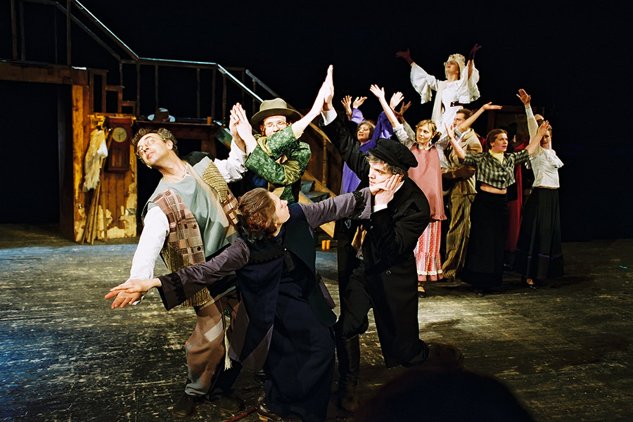 Молодость исполнителей вносит в постановку удаль и азарт. Яркие народные мелодии – еврейские, русские, украинские – увлекают героев в вихрь темпераментных танцев. Многоголосье народных песен вносит в спектакль текучесть, а все вместе – звучно и мощно говорит о радости бытия, о праздничности жизни.