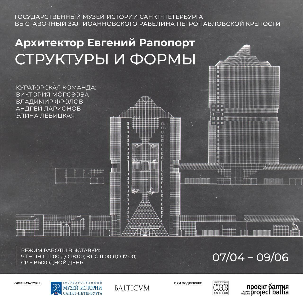 Выставка представляет ретроспективу творчества одного из ведущих архитекторов Ленинграда-Петербурга 1970—2000-х годов Евгения Михайловича (Менделевича) Рапопорта. В экспозицию вошли как реализованные, так и оставшиеся на бумаге работы зодчего из коллекции Государственного музея истории Санкт-Петербурга и собрания семьи архитектора.