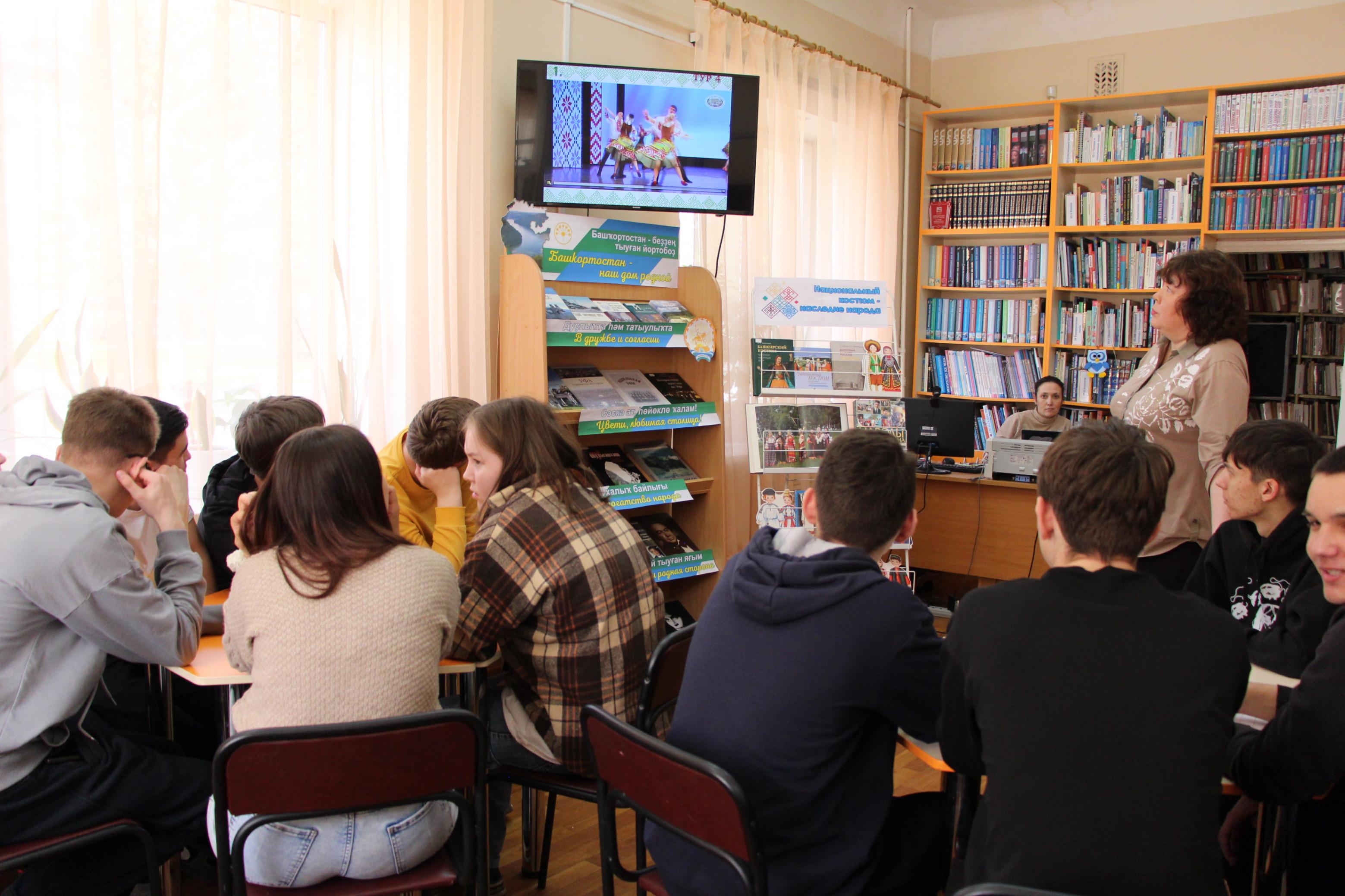 Мероприятие начнется с презентации национальных костюмов. Из рассказа библиотекаря школьники узнают об истории и особенностях национальных костюмов разных народов, населяющих Республику Башкортостан. Познакомятся с колоритом башкирского русского, татарского, чувашского орнамента, с терминологией одежды. Ребята узнают, как одевались тысячу лет назад далекие предки, какую ткань они использовали, из чего состоял народный костюм, какие головные уборы и обувь носили мужчины и женщины.