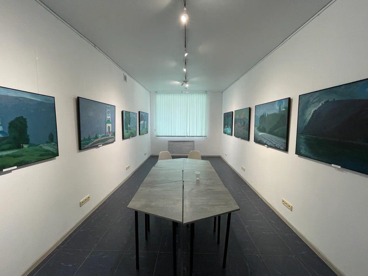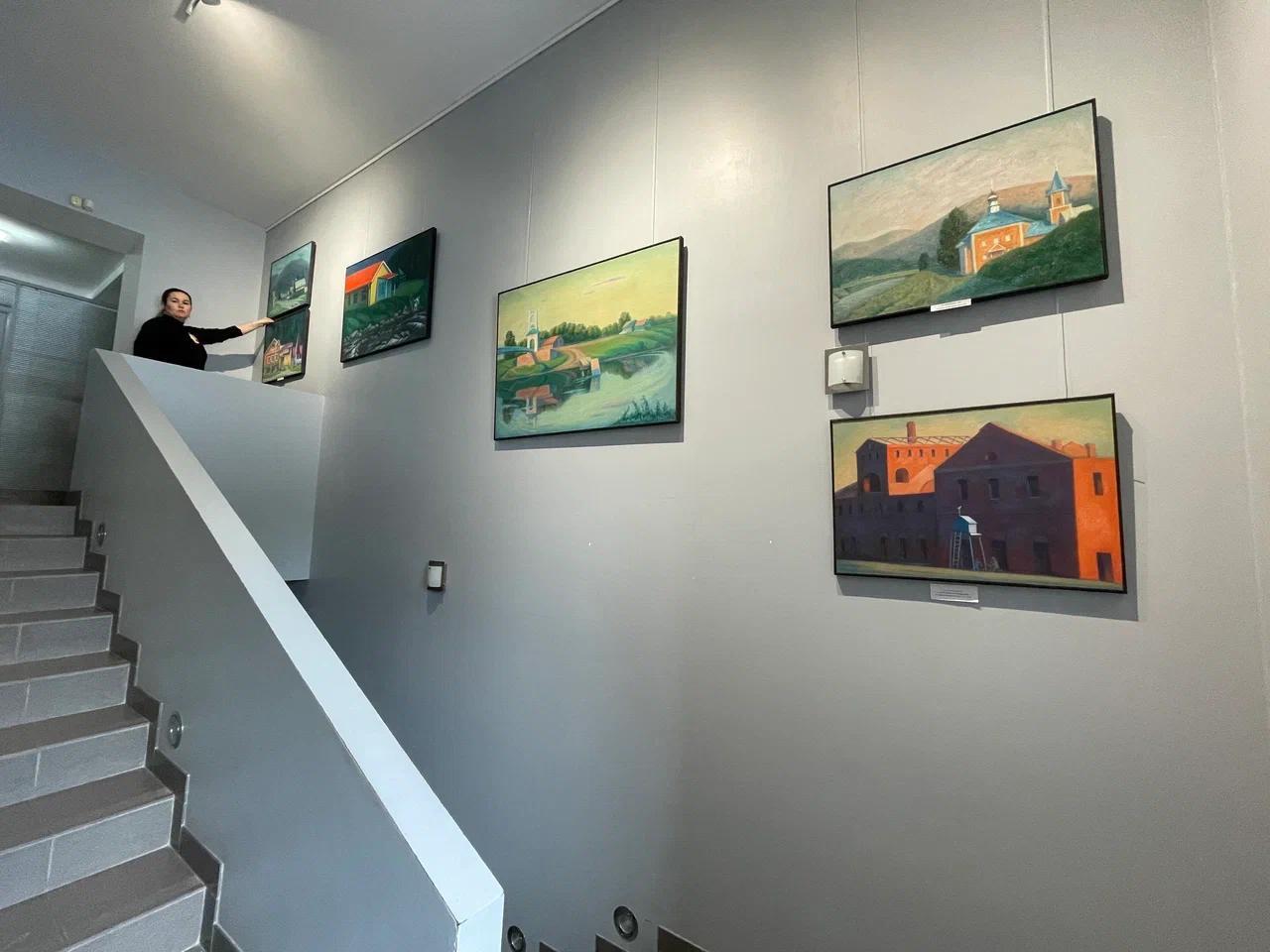 В первом зале вы найдете отклик своим чувствам в картинах «На реке Белой» 2006, «Инзер: Мечеть» 2006, «Вечер в Бодашкино» 2009, «Мечеть в Бодашкино» 2019, «В поселке Тюлюк», «Мост в Нижних Лемизах», «Мостик в Тюлюке», «Дачное хозяйство Николая». Все близкое, родное, особенно мостики, автобусные деревенские остановки, петушки, детская площадка.